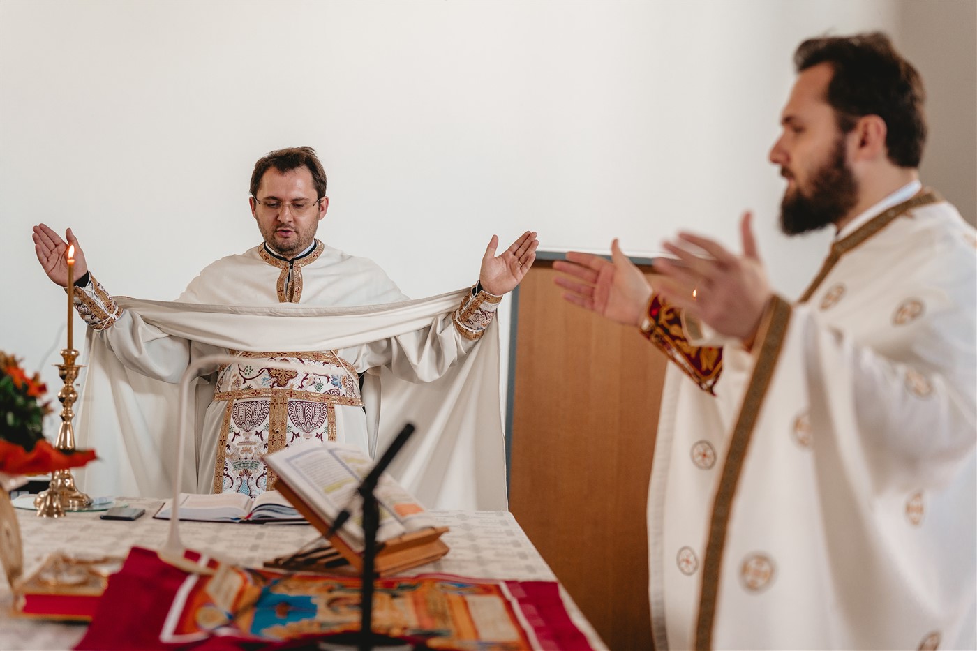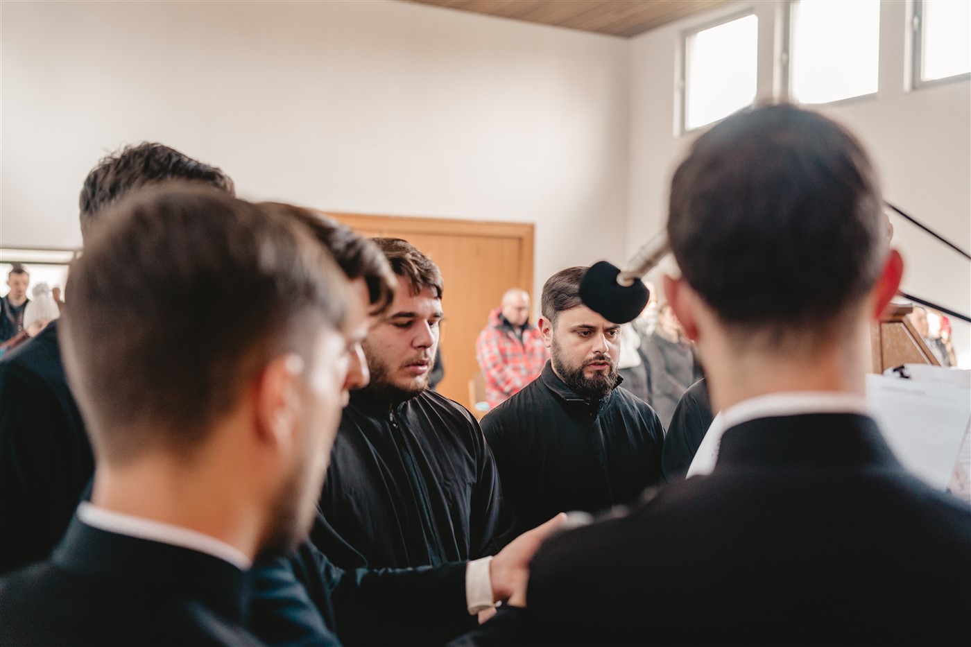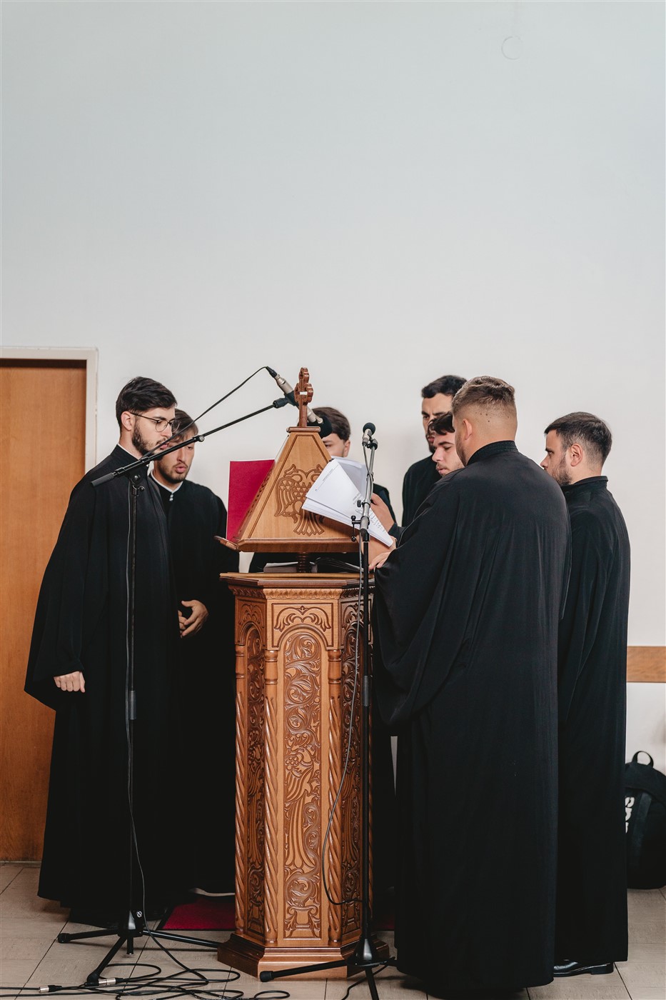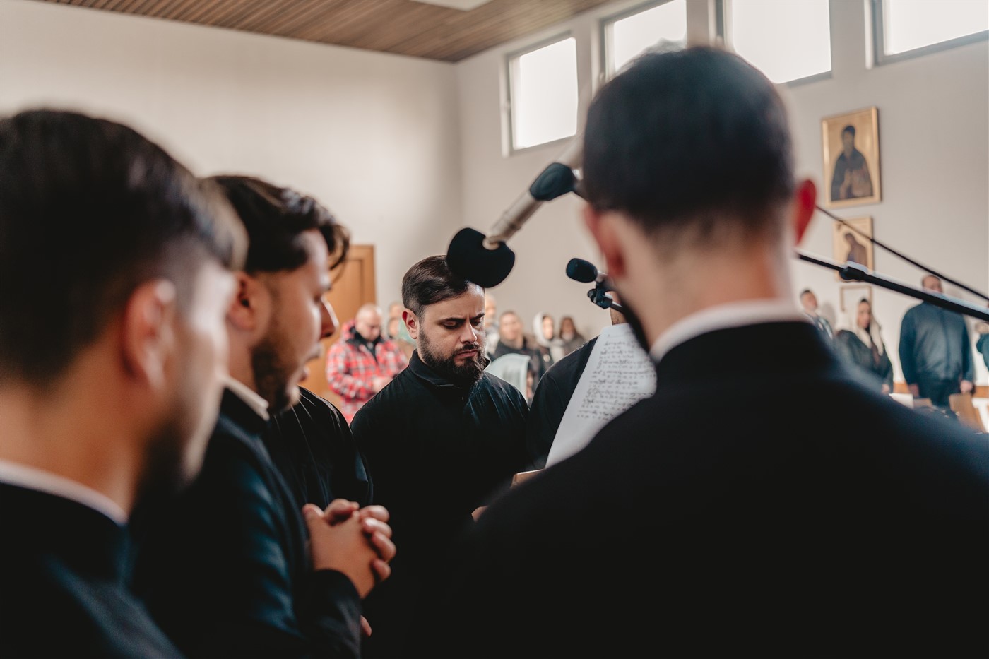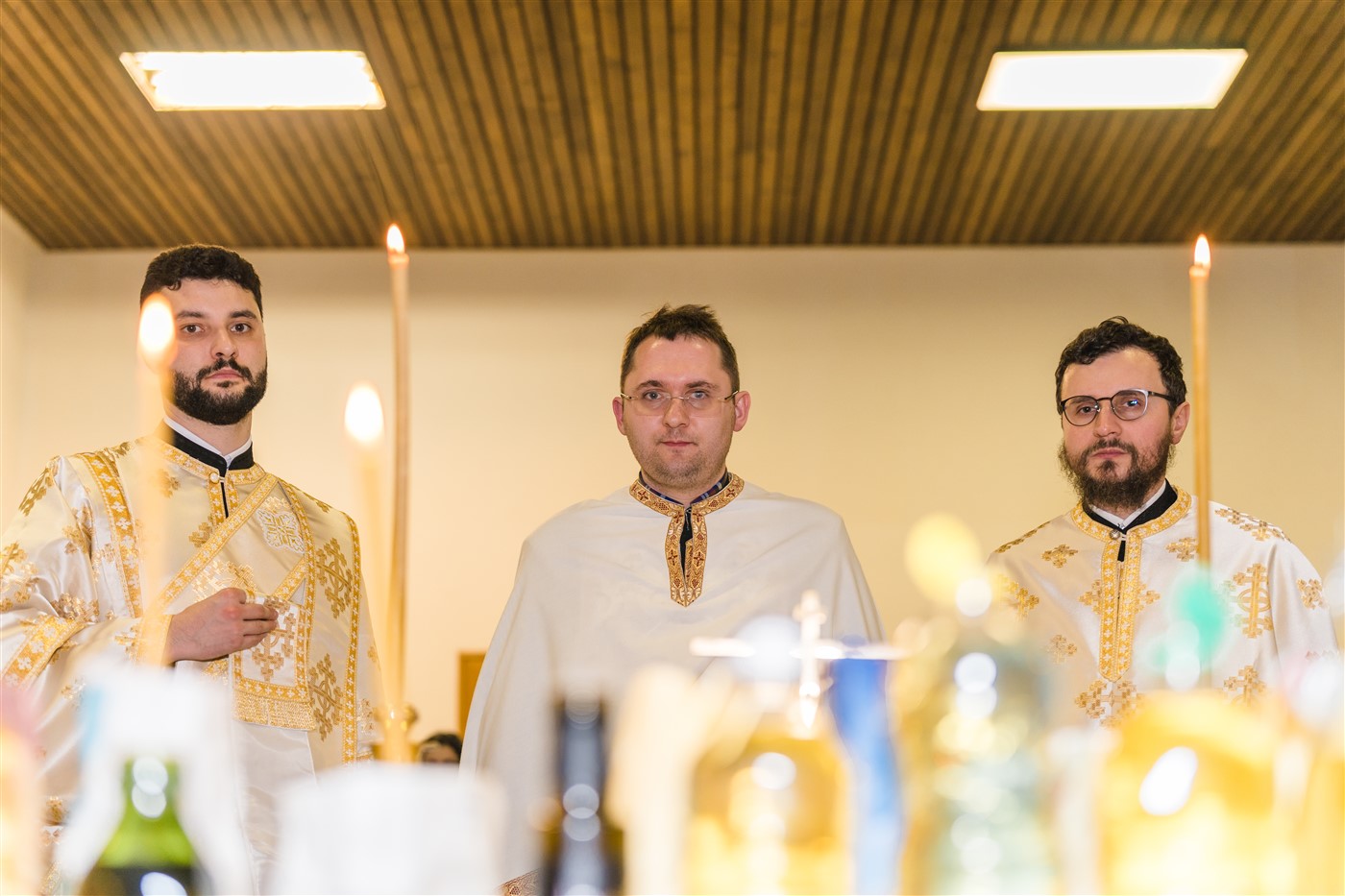 Răspunsurile la strană au fost date în limba germană, în stil bizantin, de tinerii Matthias El-Far, Ammar Sayegh, la care s-a alăturat și protopsaltul român Claudiu Morteanu.
