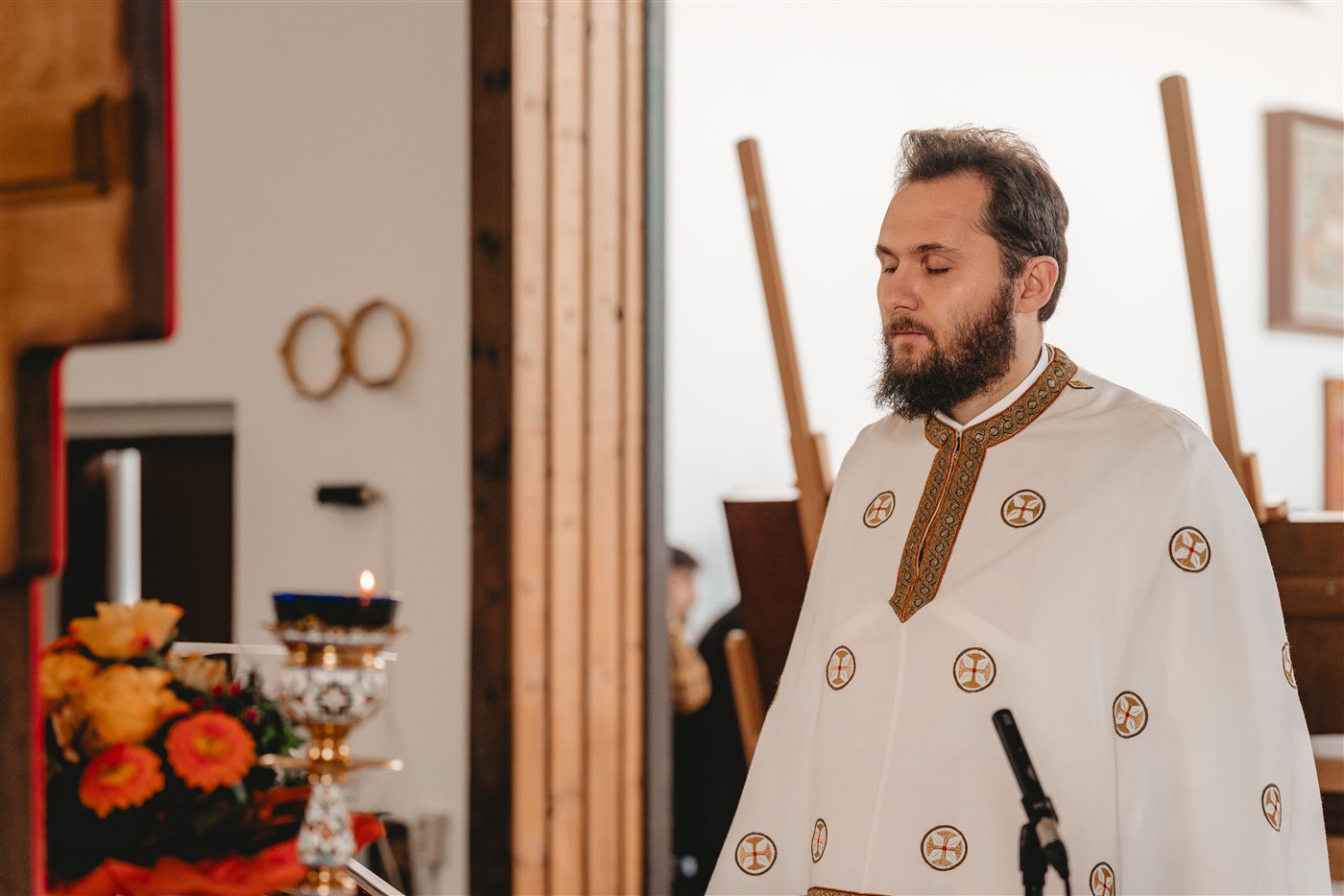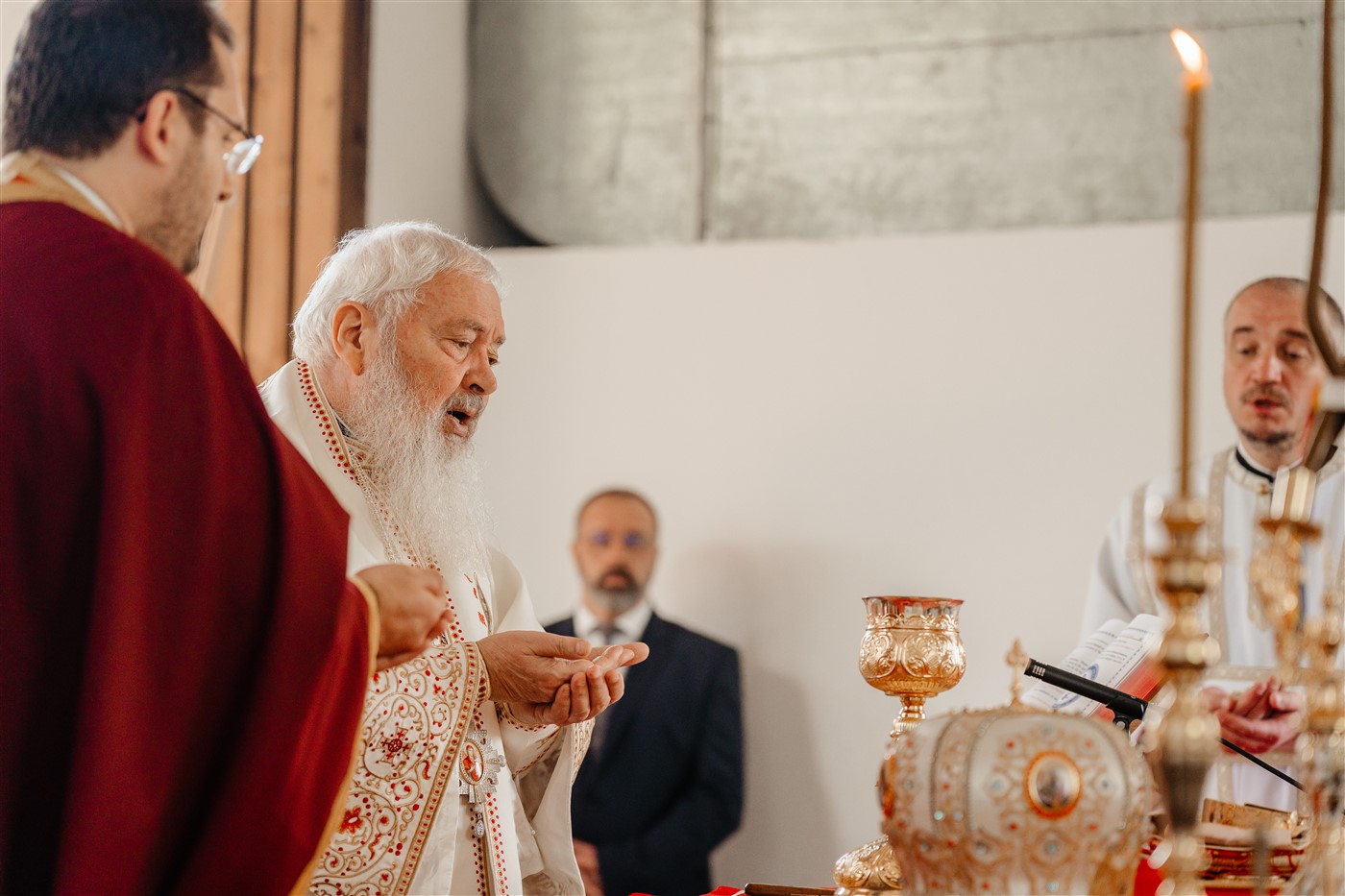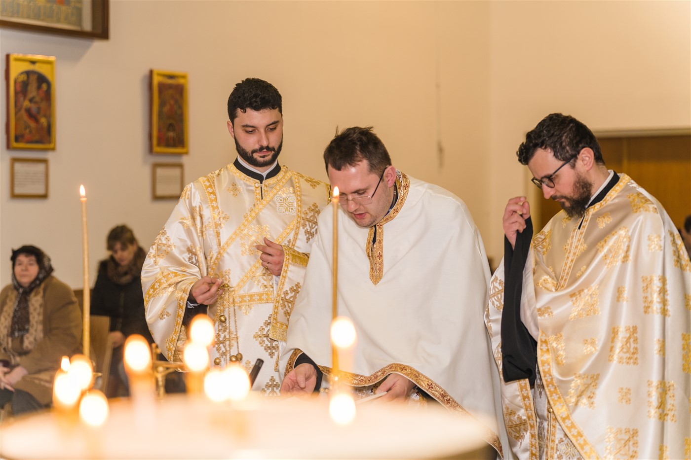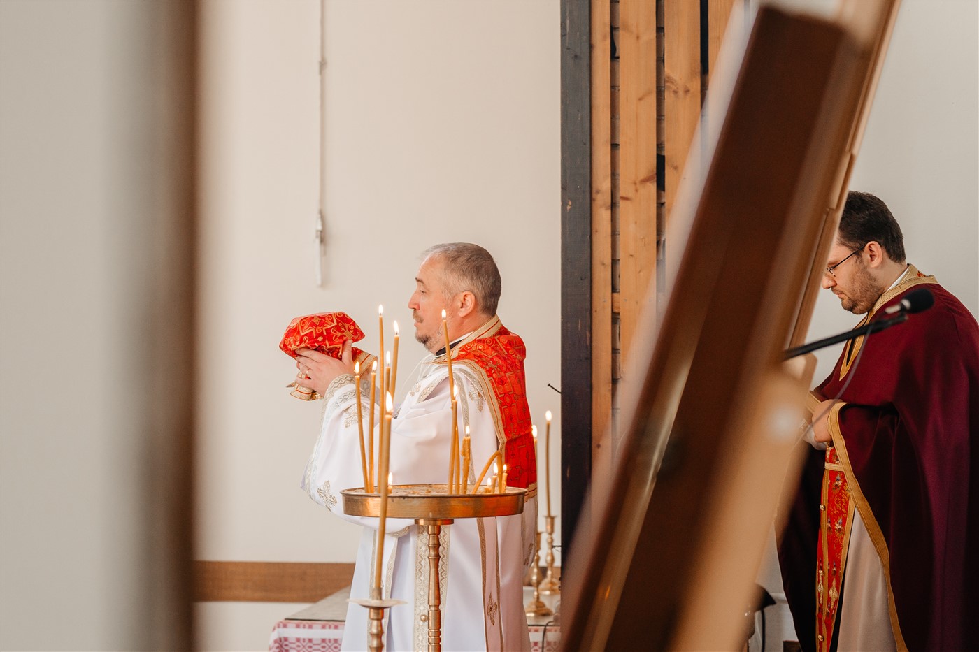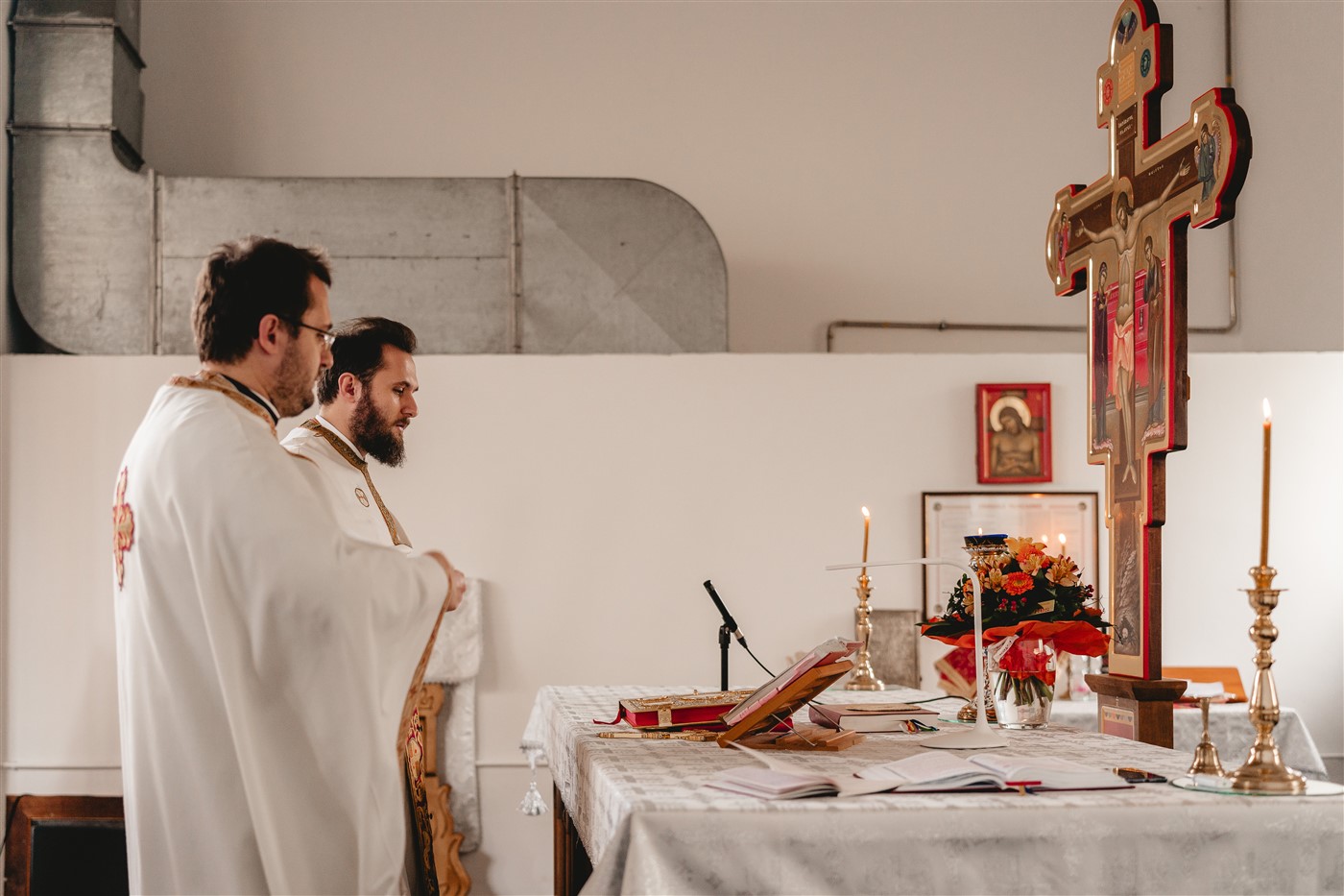 Răspunsurile la strană au fost date în limba germană, în stil bizantin, de tinerii Matthias El-Far, Ammar Sayegh, la care s-a alăturat și protopsaltul român Claudiu Morteanu.