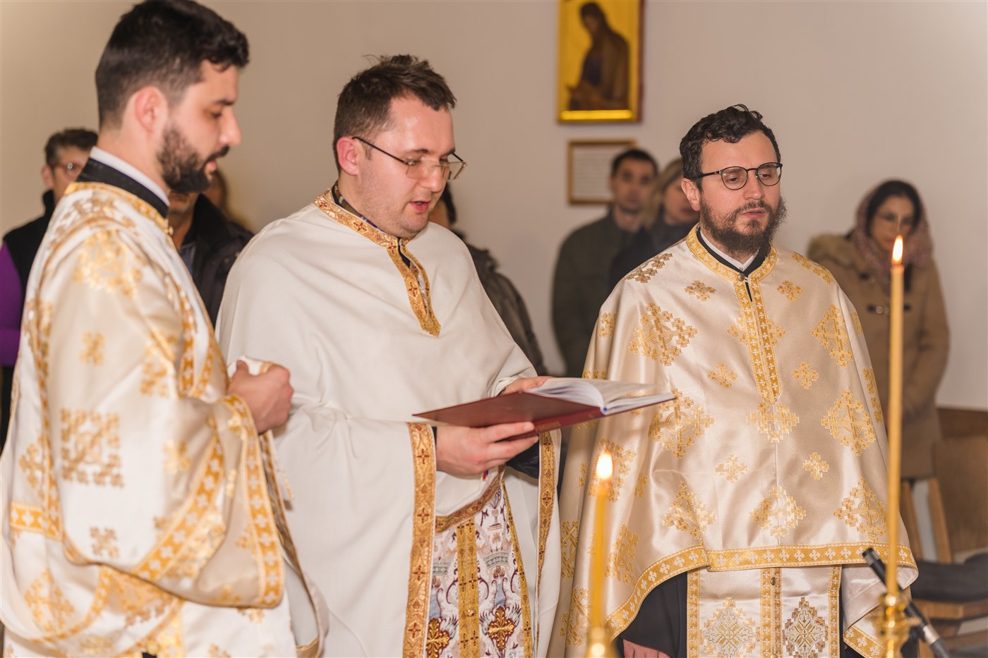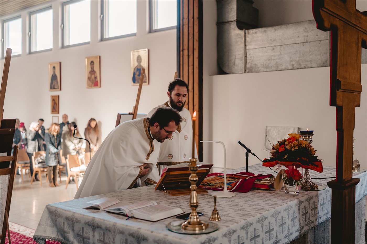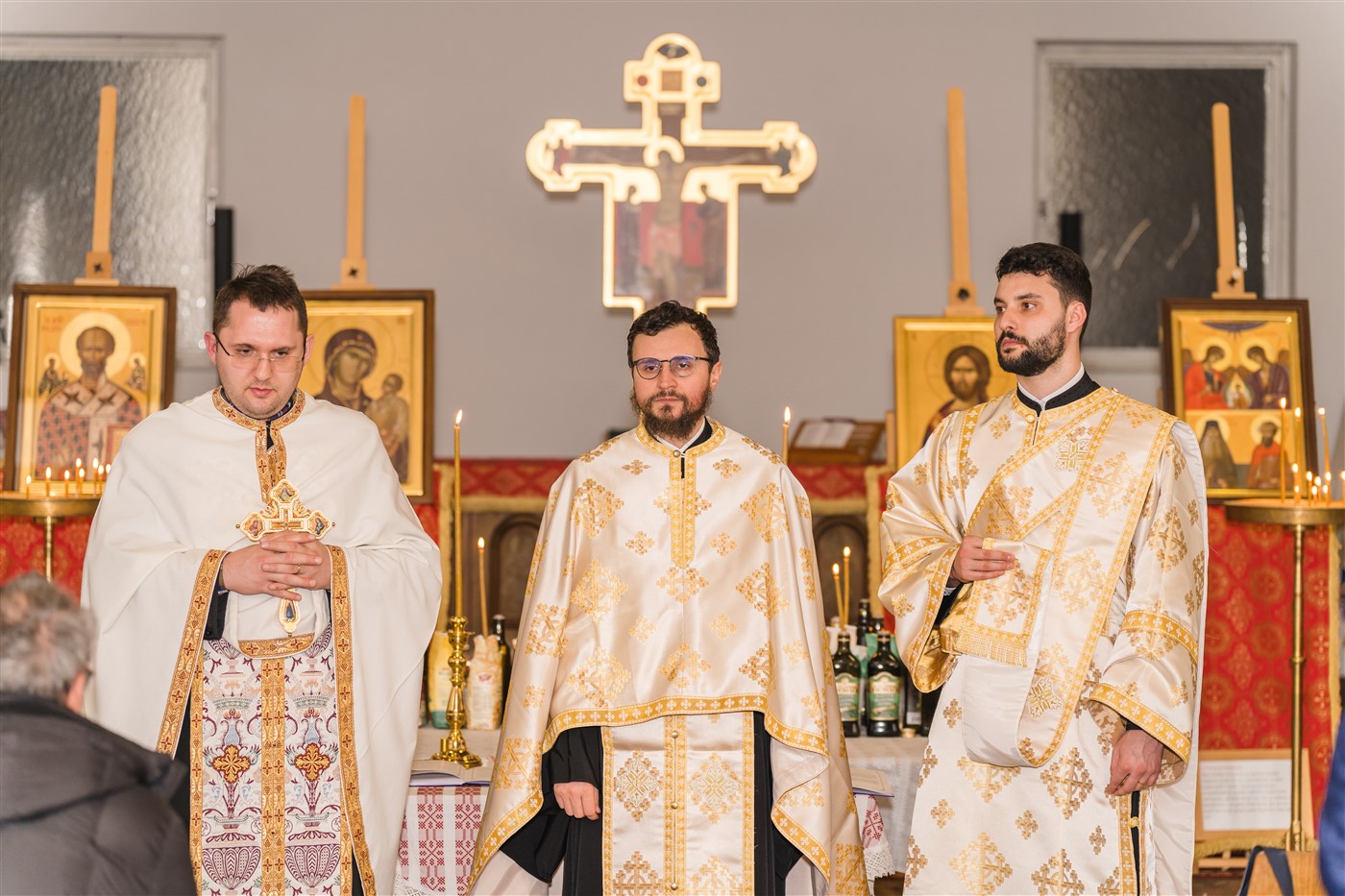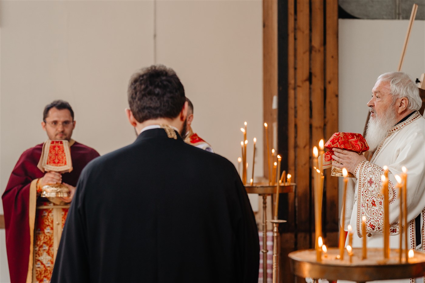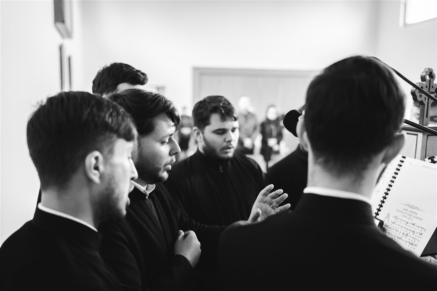 Răspunsurile la strană au fost date în limba germană, în stil bizantin, de tinerii Matthias El-Far, Ammar Sayegh, la care s-a alăturat și protopsaltul român Claudiu Morteanu.