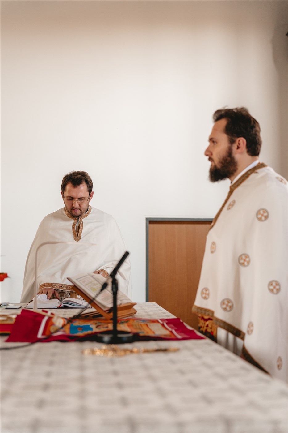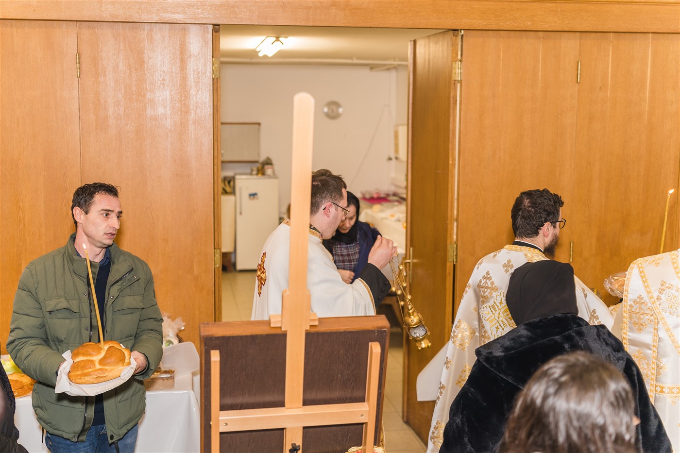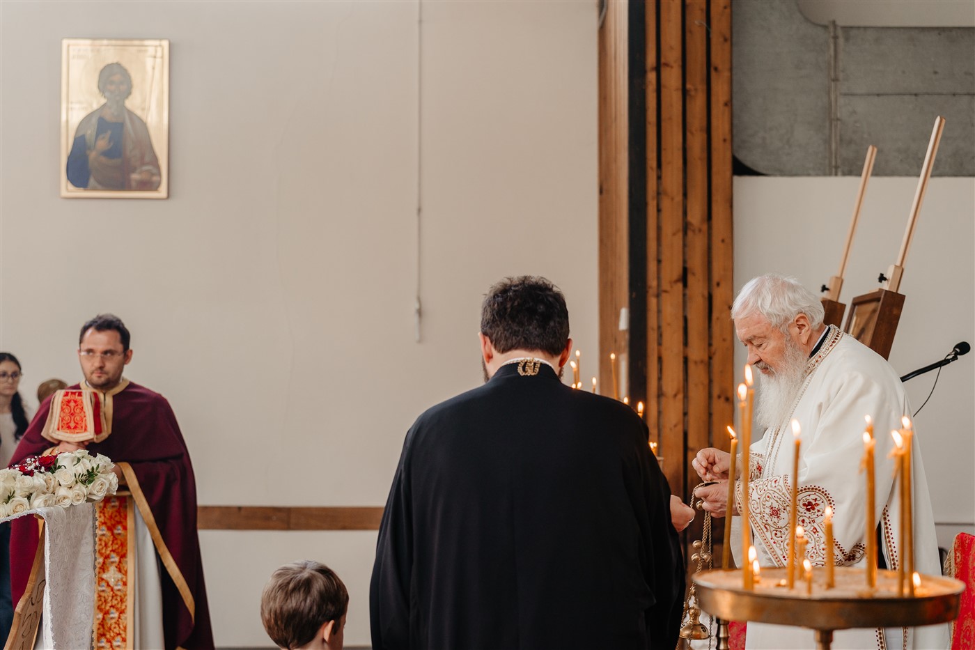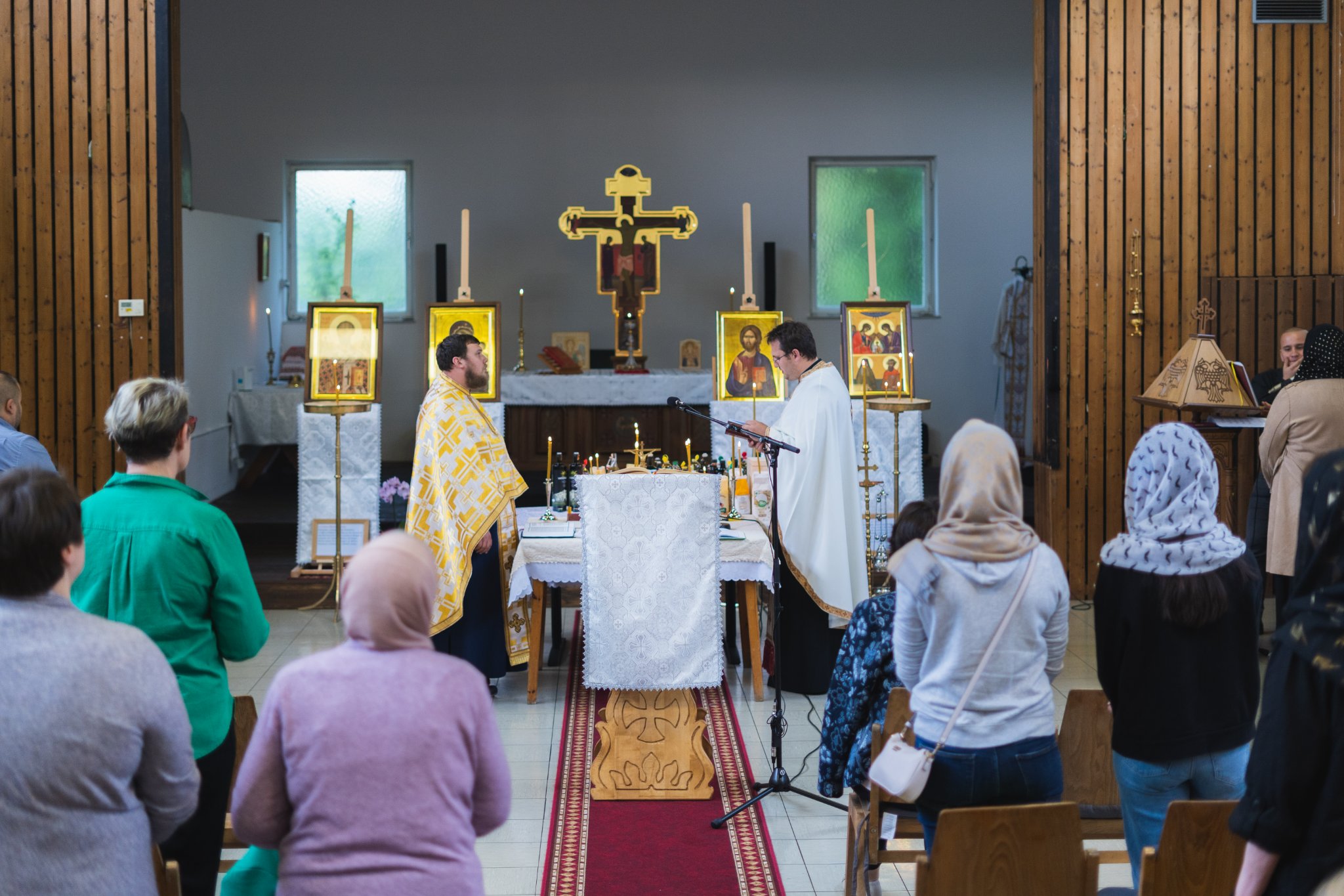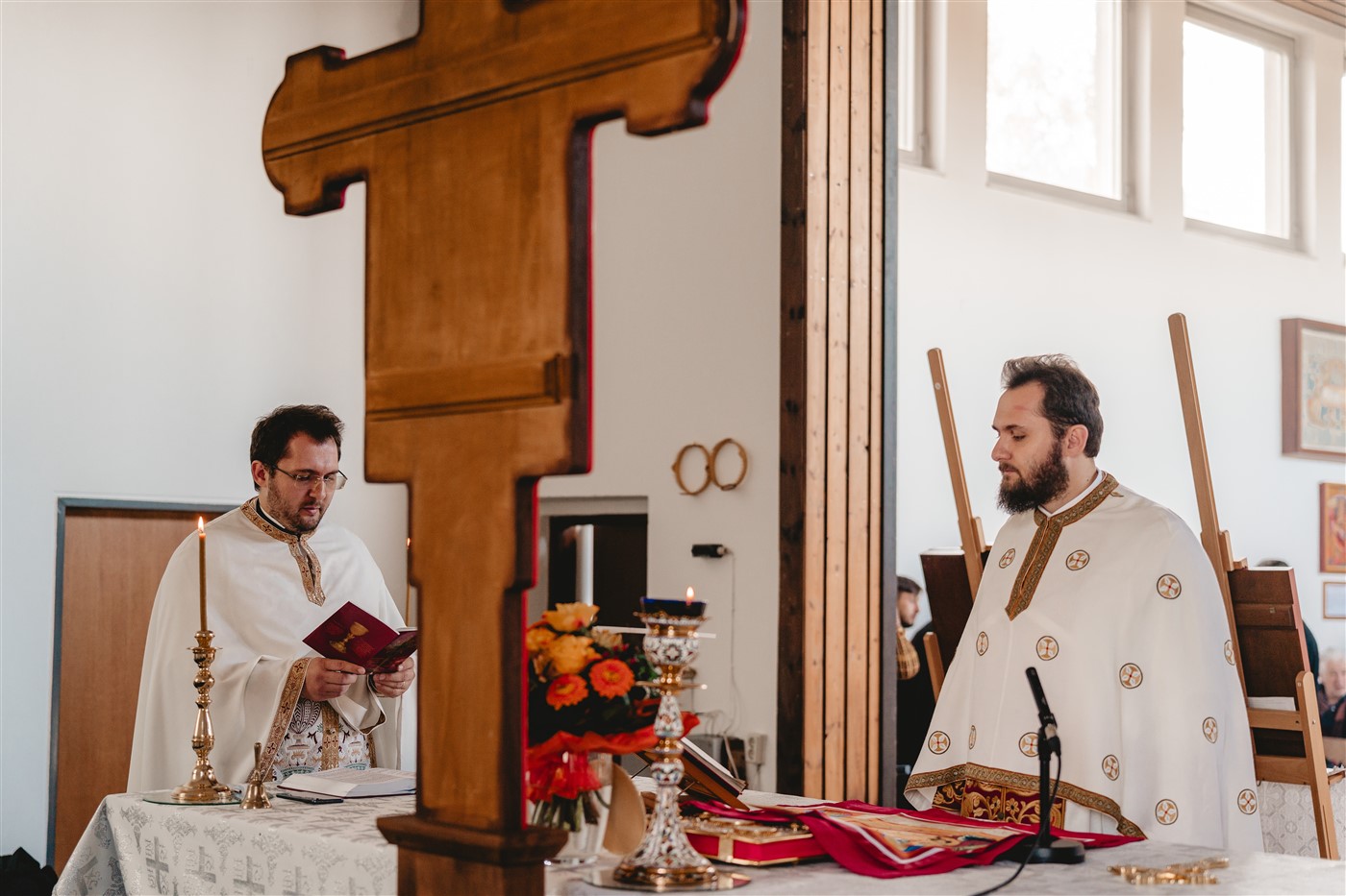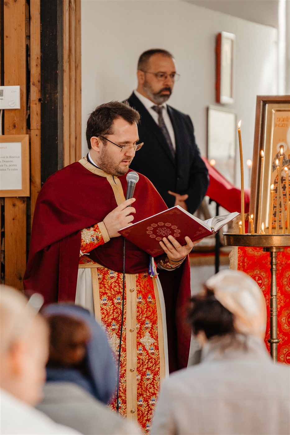 Răspunsurile la strană au fost date în limba germană, în stil bizantin, de tinerii Matthias El-Far, Ammar Sayegh, la care s-a alăturat și protopsaltul român Claudiu Morteanu.