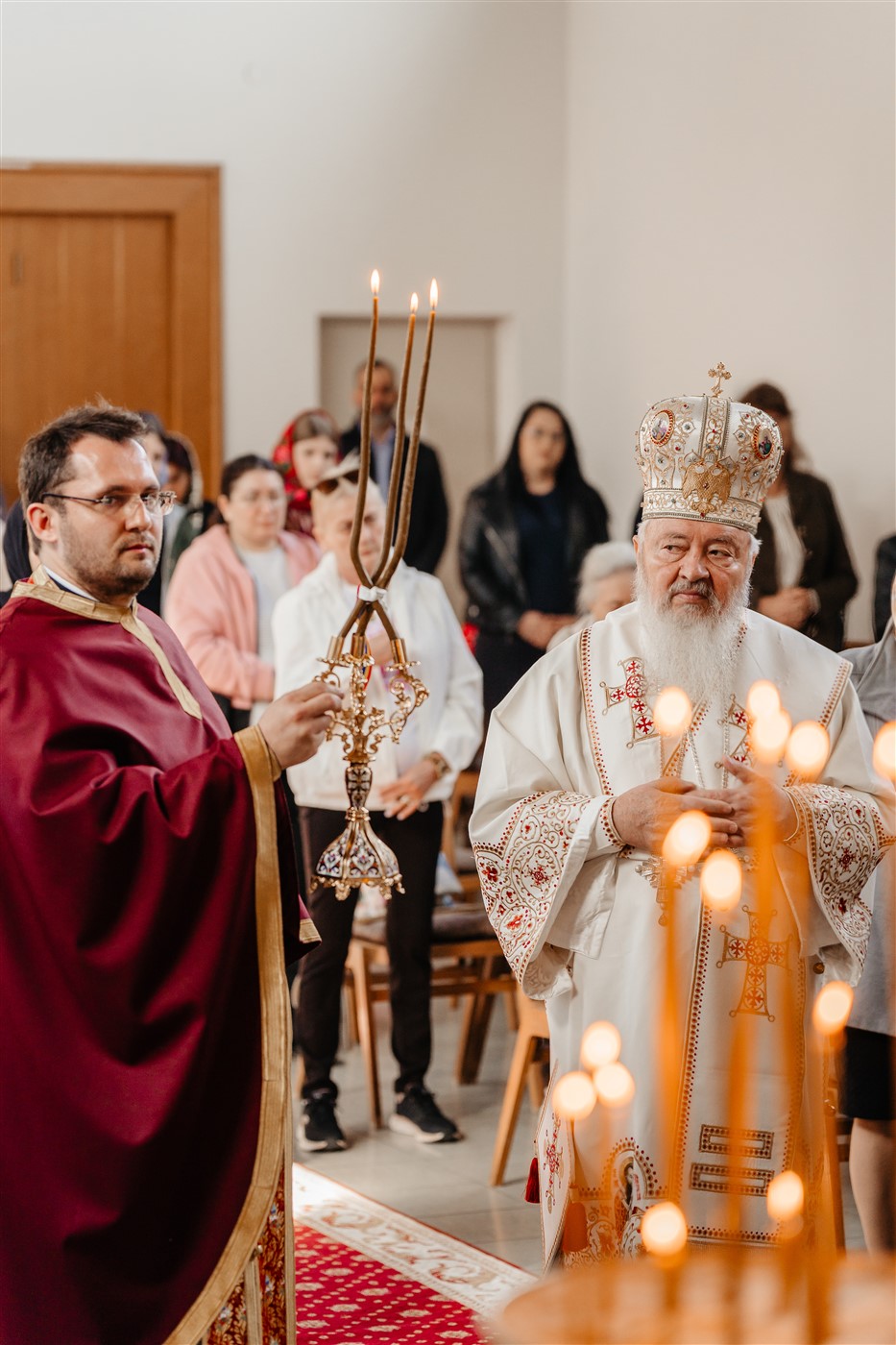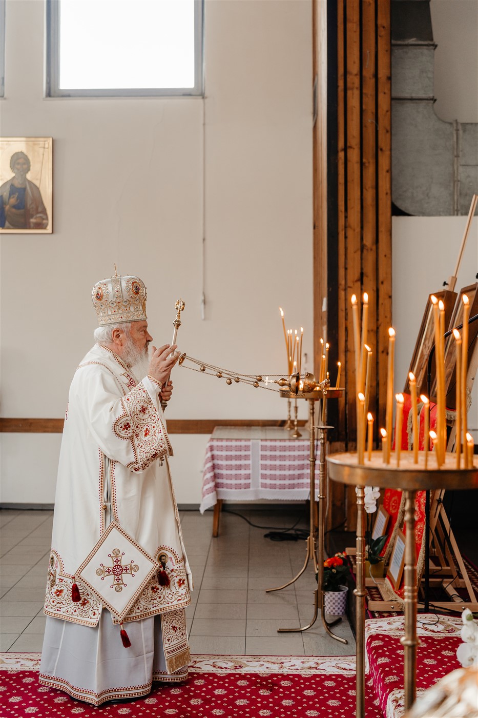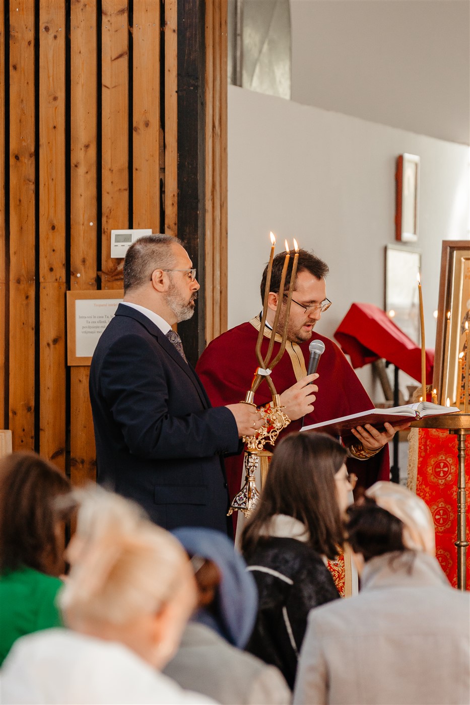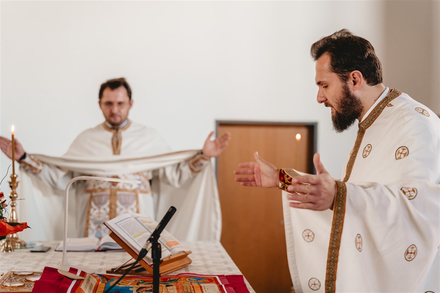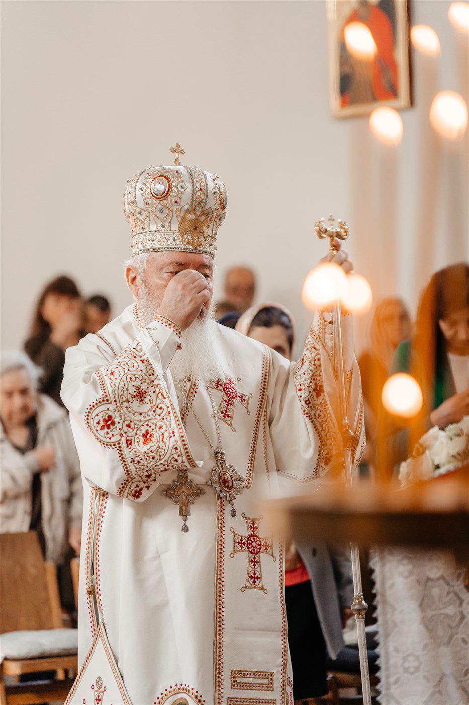 Răspunsurile la strană au fost date în limba germană, în stil bizantin, de tinerii Matthias El-Far, Ammar Sayegh, la care s-a alăturat și protopsaltul român Claudiu Morteanu.