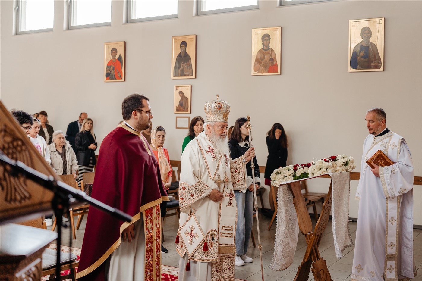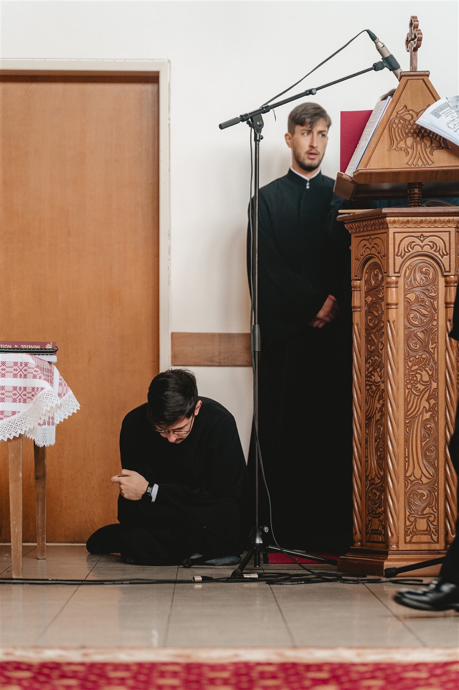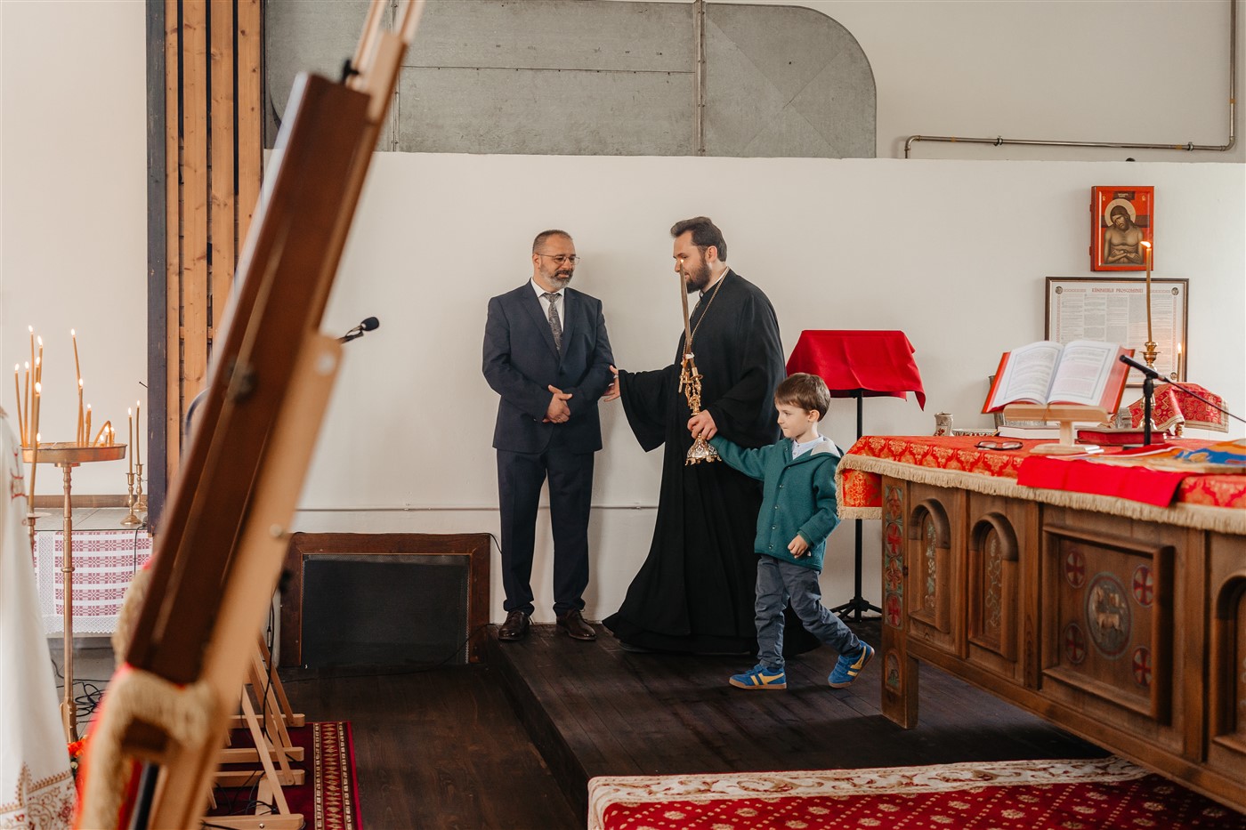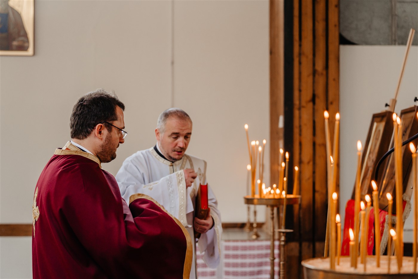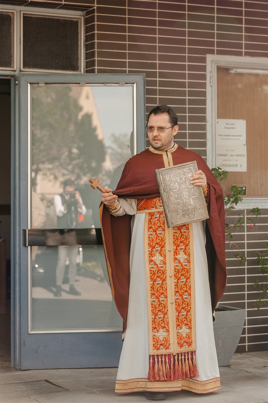 Răspunsurile la strană au fost date în limba germană, în stil bizantin, de tinerii Matthias El-Far, Ammar Sayegh, la care s-a alăturat și protopsaltul român Claudiu Morteanu.