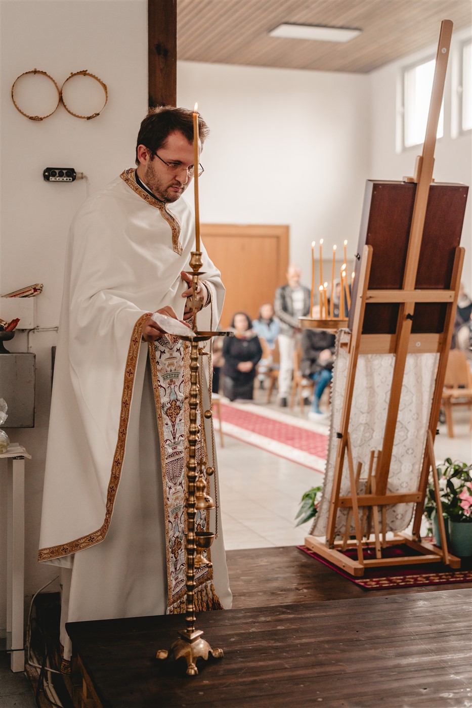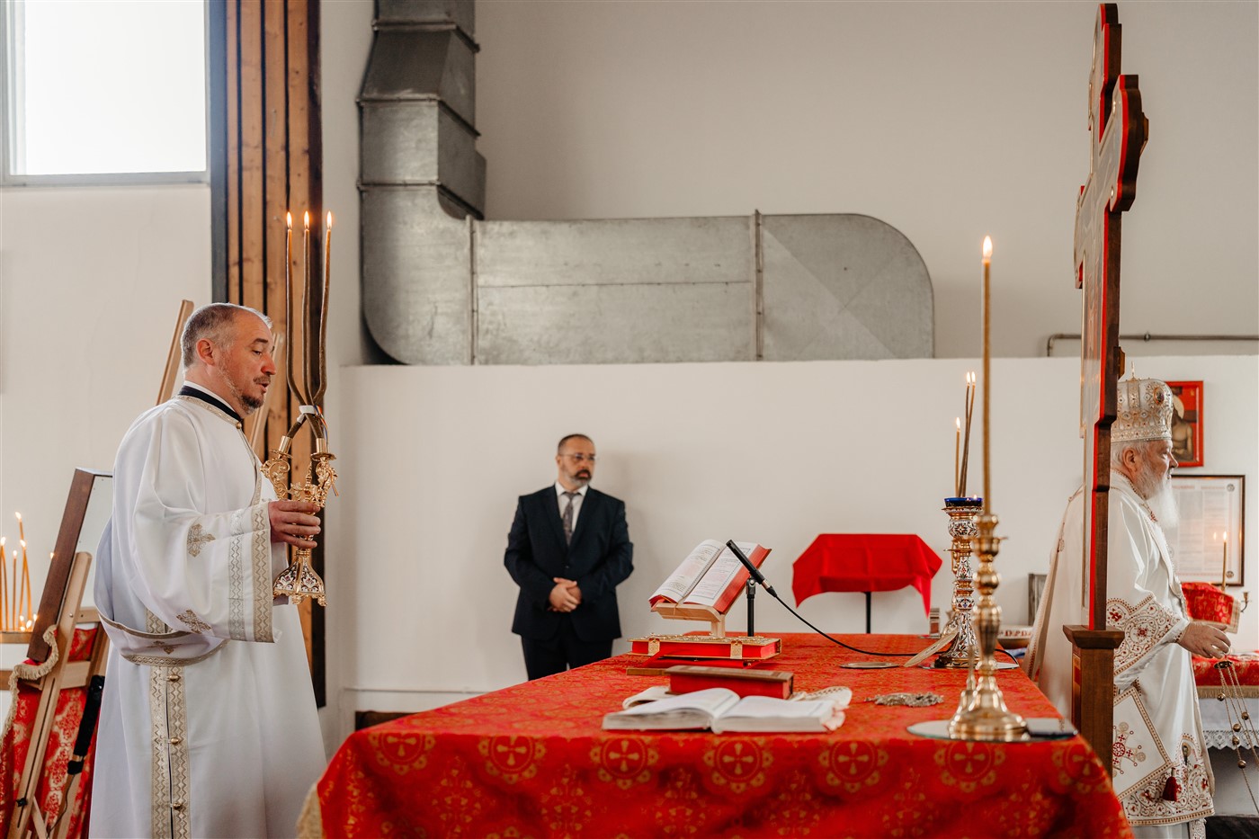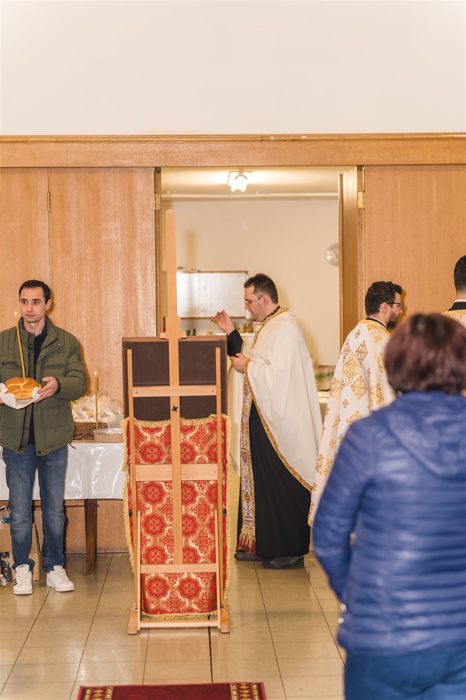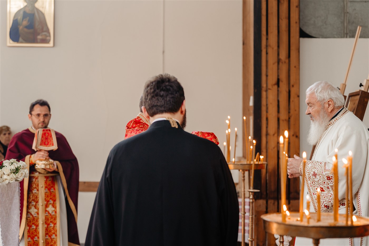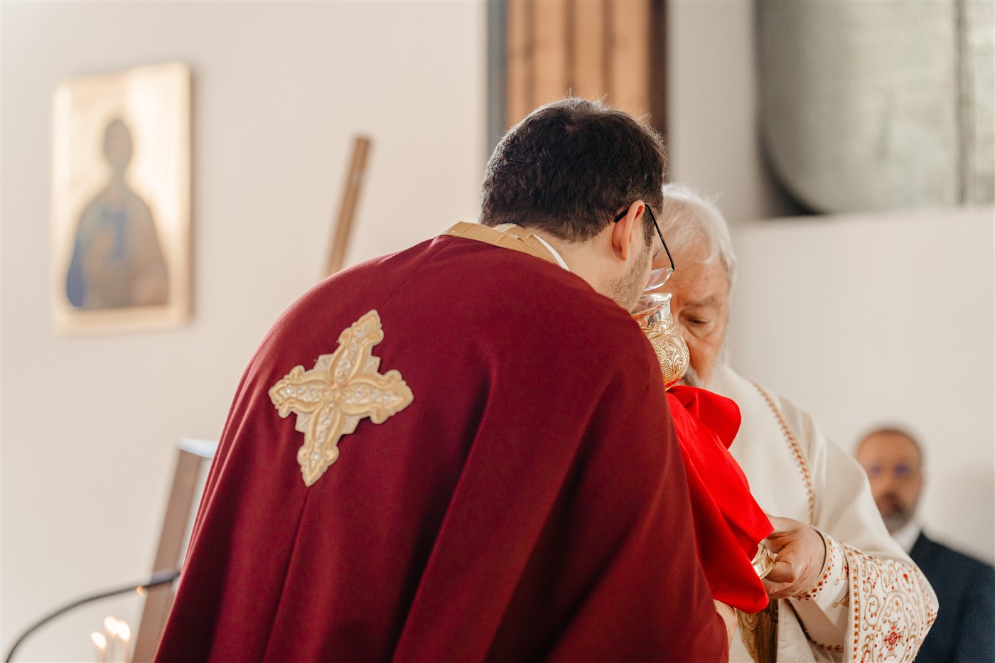 Răspunsurile la strană au fost date în limba germană, în stil bizantin, de tinerii Matthias El-Far, Ammar Sayegh, la care s-a alăturat și protopsaltul român Claudiu Morteanu.
