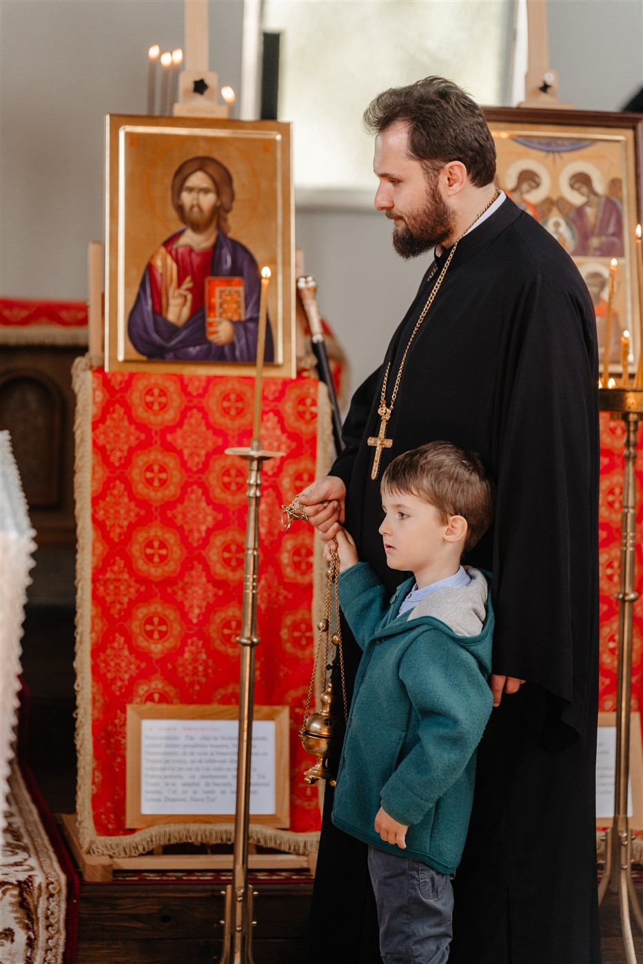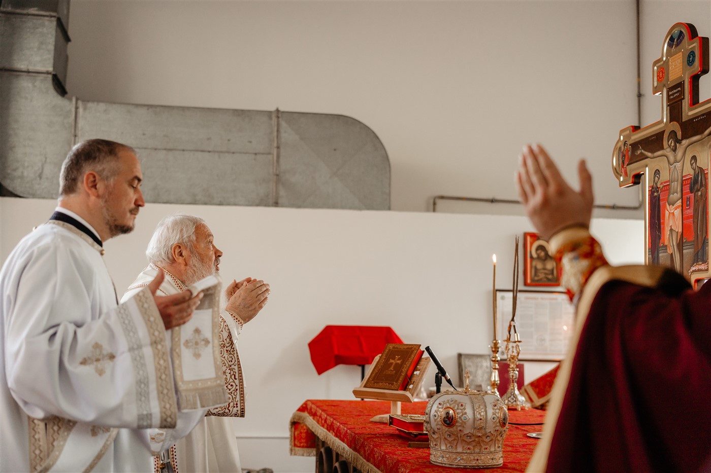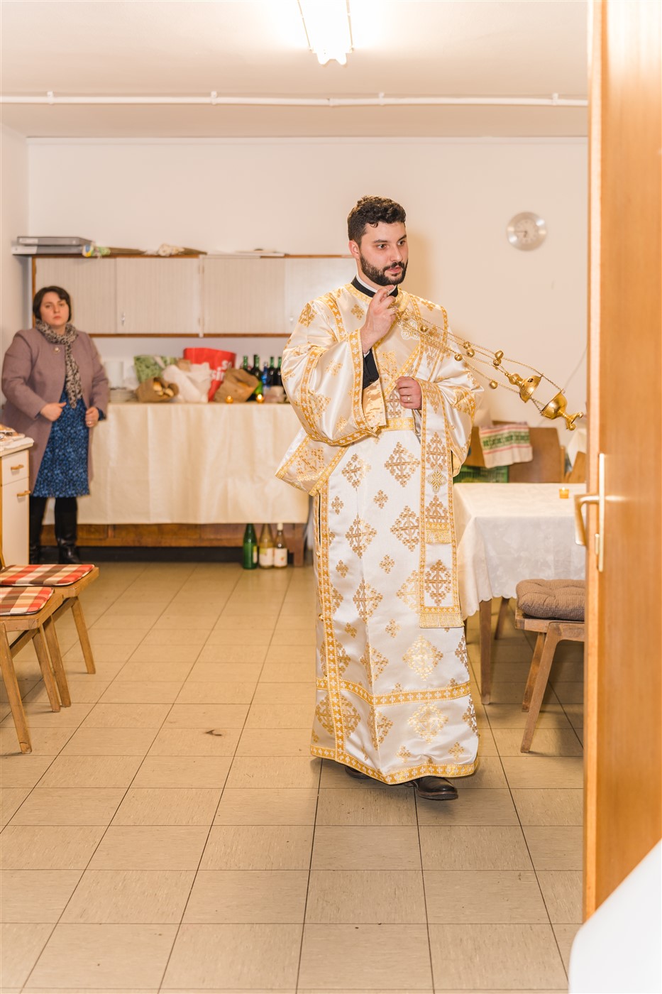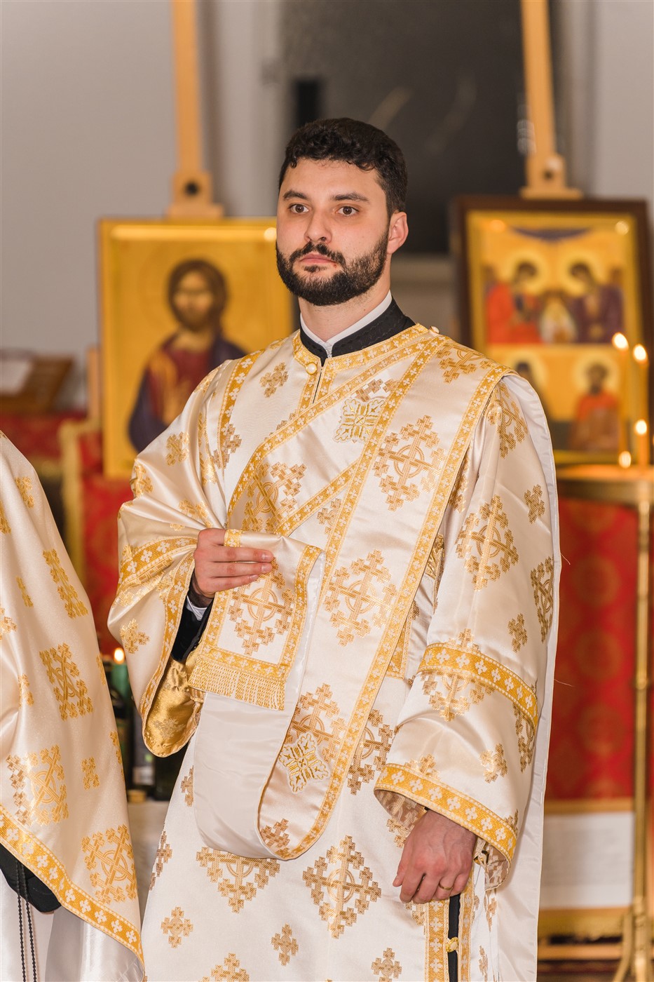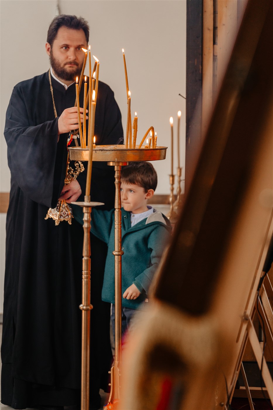 Răspunsurile la strană au fost date în limba germană, în stil bizantin, de tinerii Matthias El-Far, Ammar Sayegh, la care s-a alăturat și protopsaltul român Claudiu Morteanu.