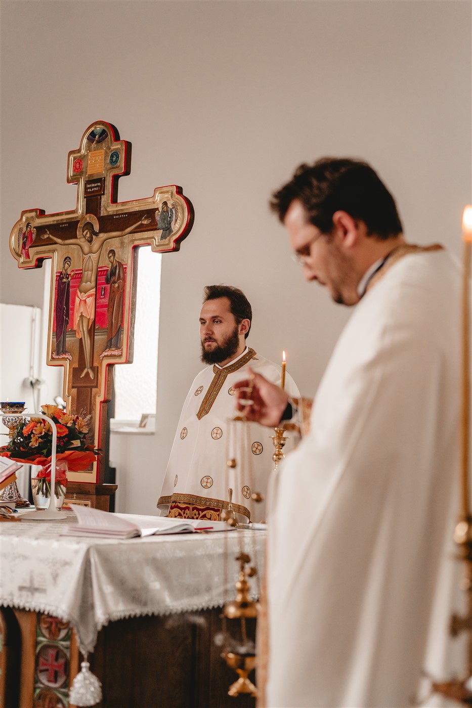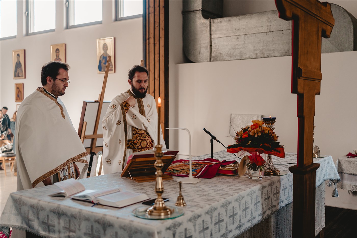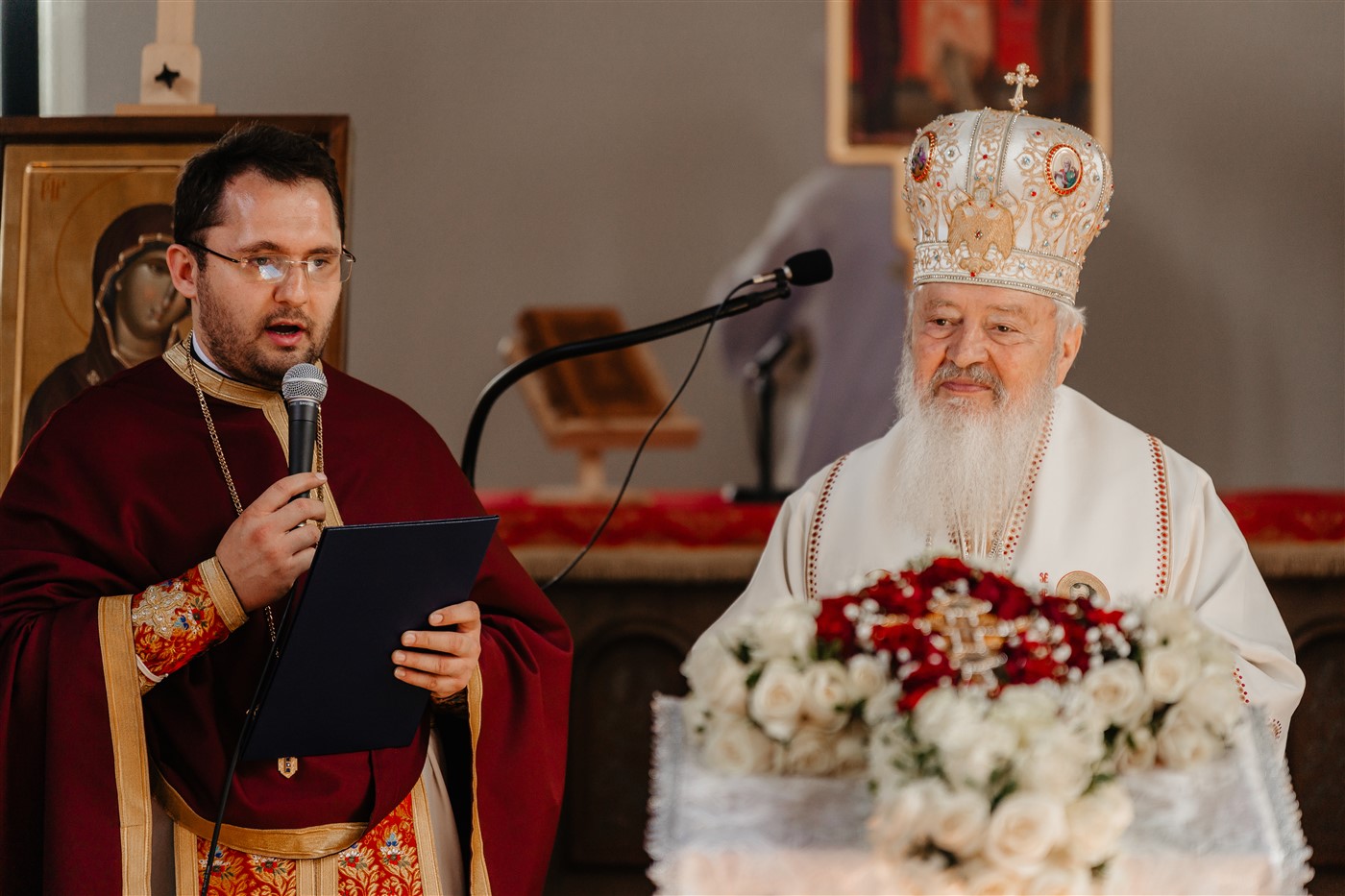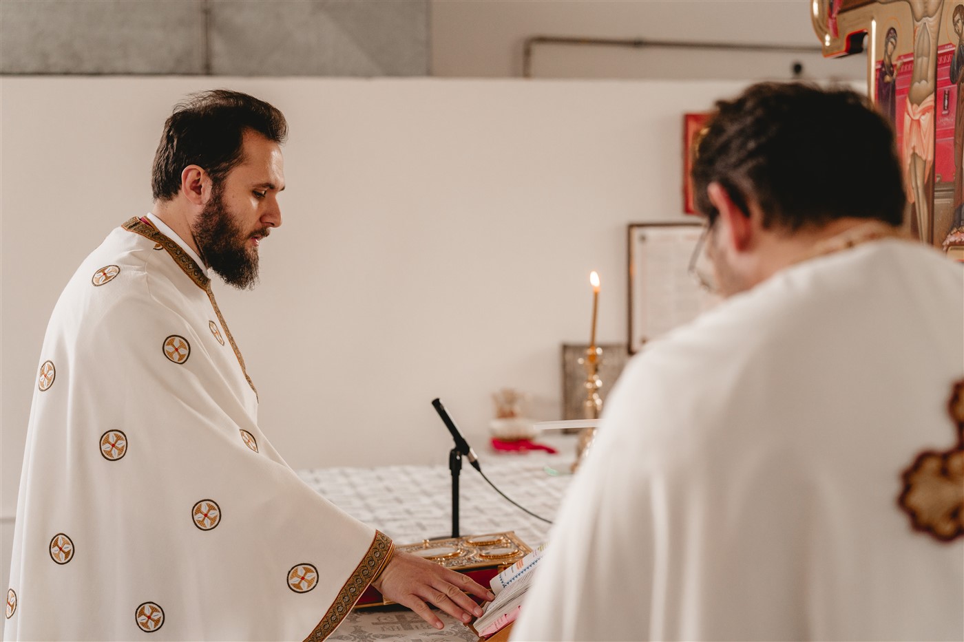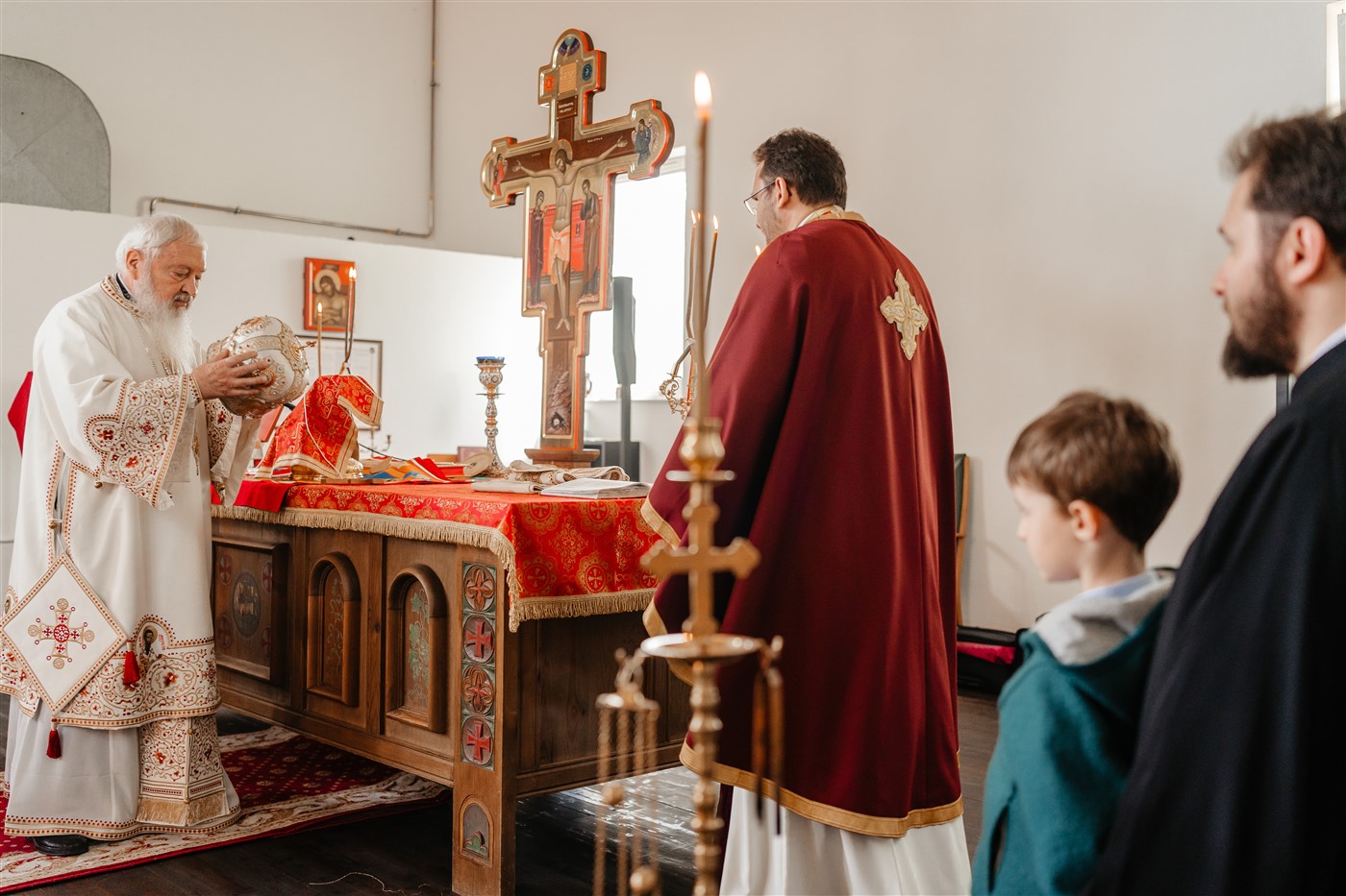 Răspunsurile la strană au fost date în limba germană, în stil bizantin, de tinerii Matthias El-Far, Ammar Sayegh, la care s-a alăturat și protopsaltul român Claudiu Morteanu.