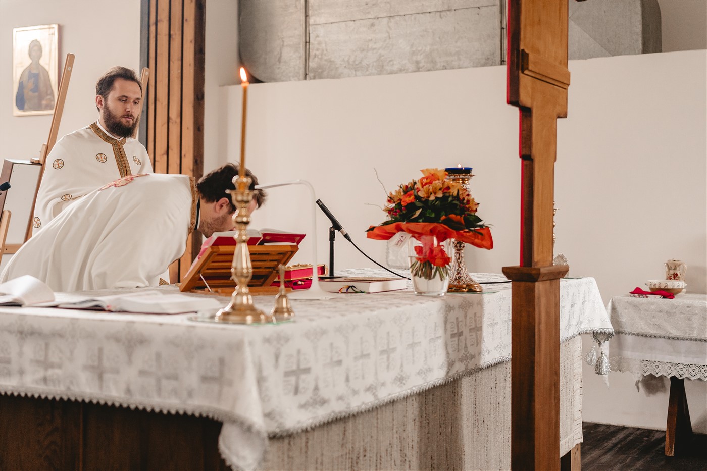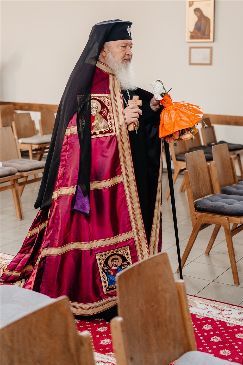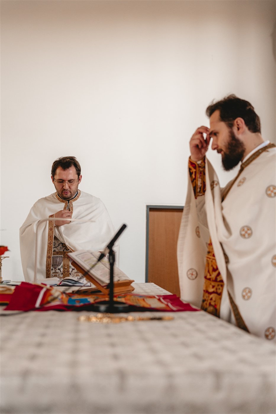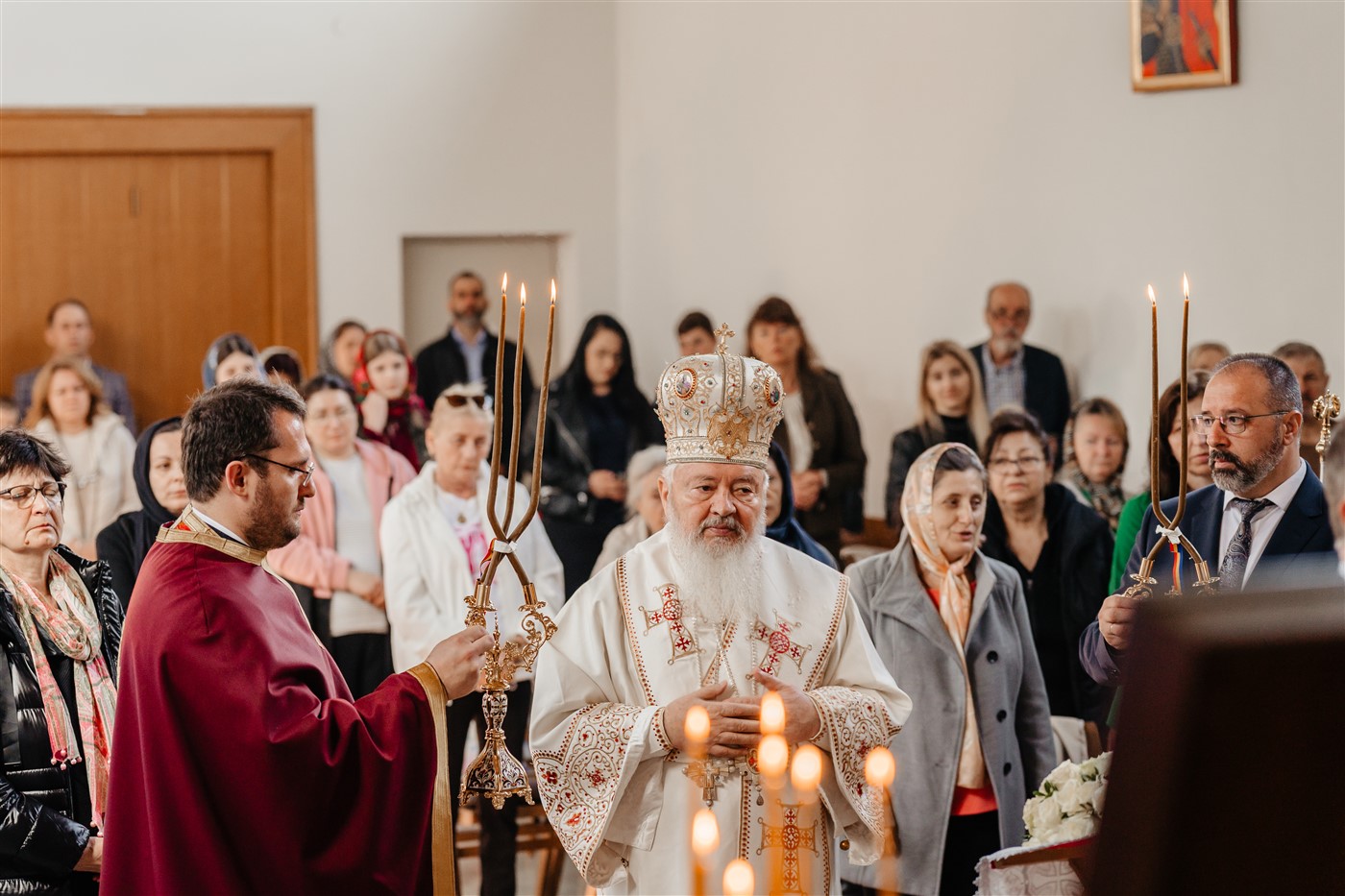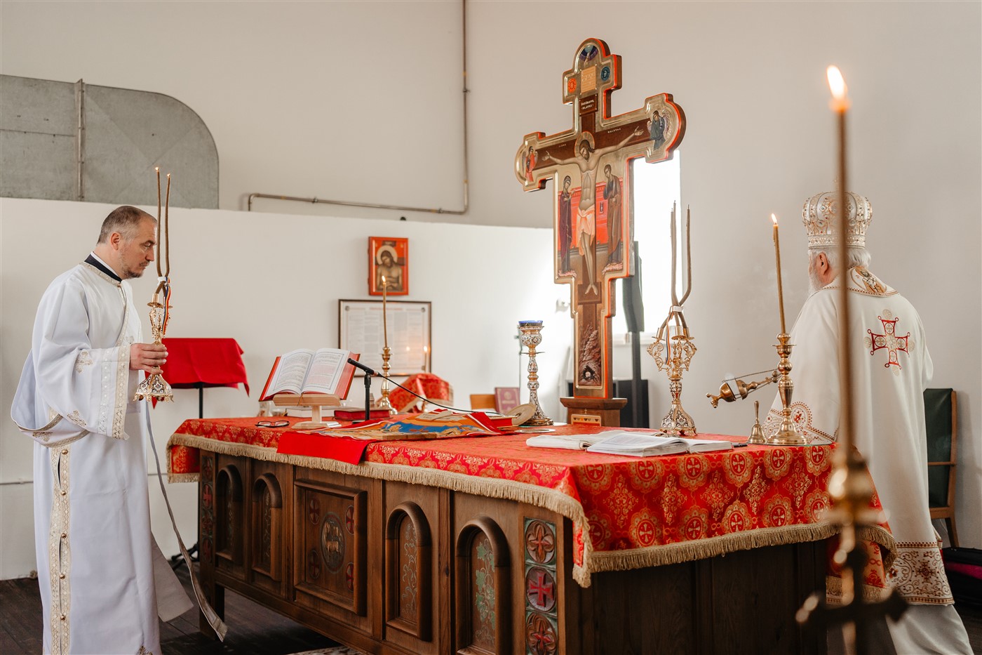 Răspunsurile la strană au fost date în limba germană, în stil bizantin, de tinerii Matthias El-Far, Ammar Sayegh, la care s-a alăturat și protopsaltul român Claudiu Morteanu.