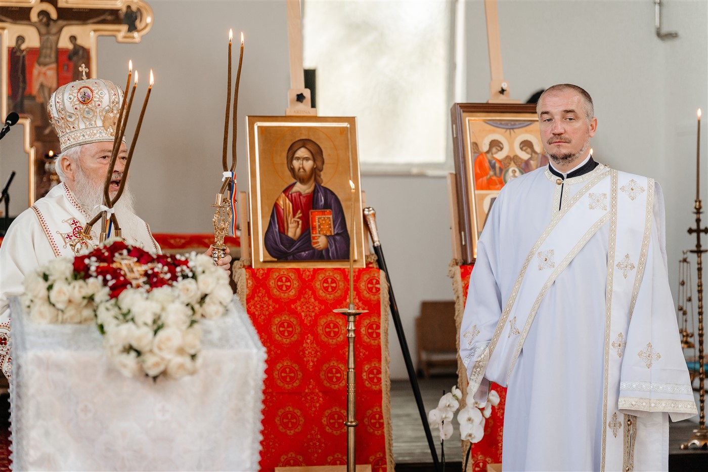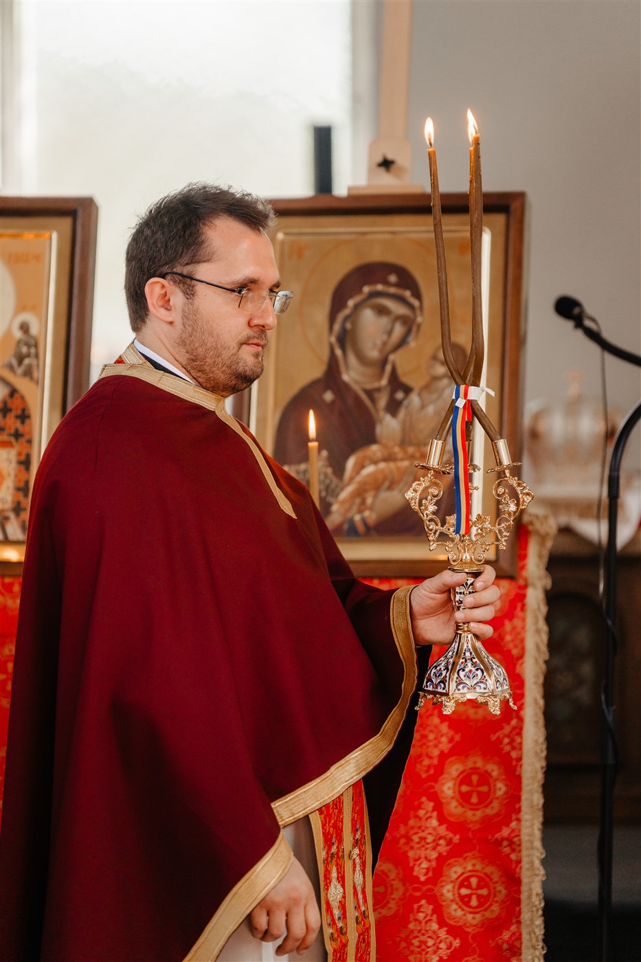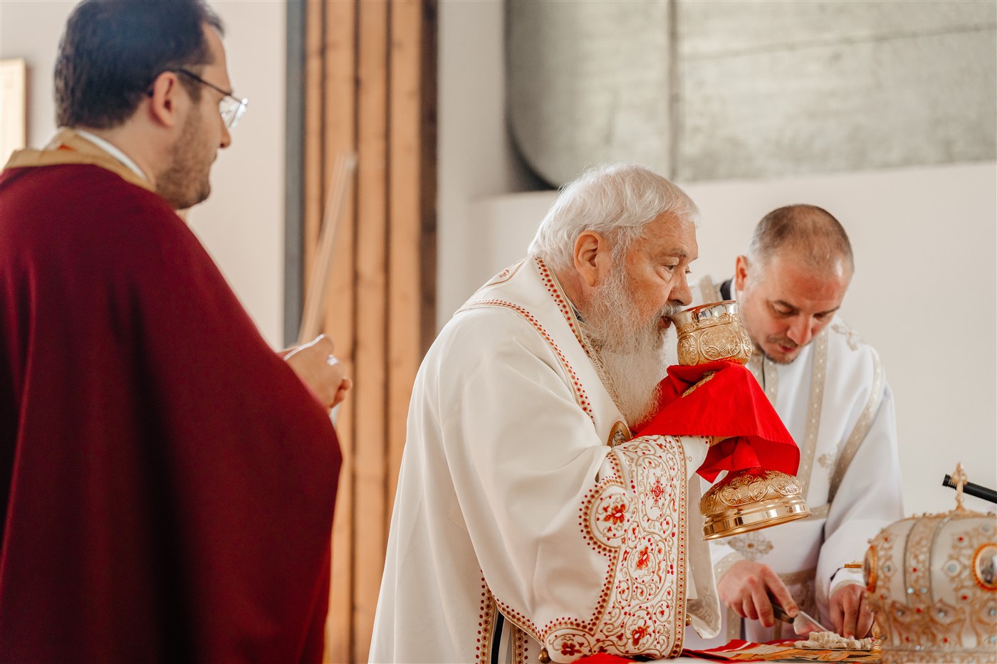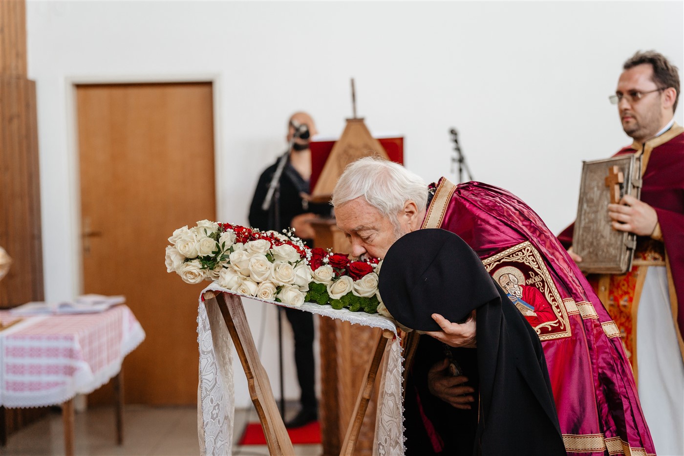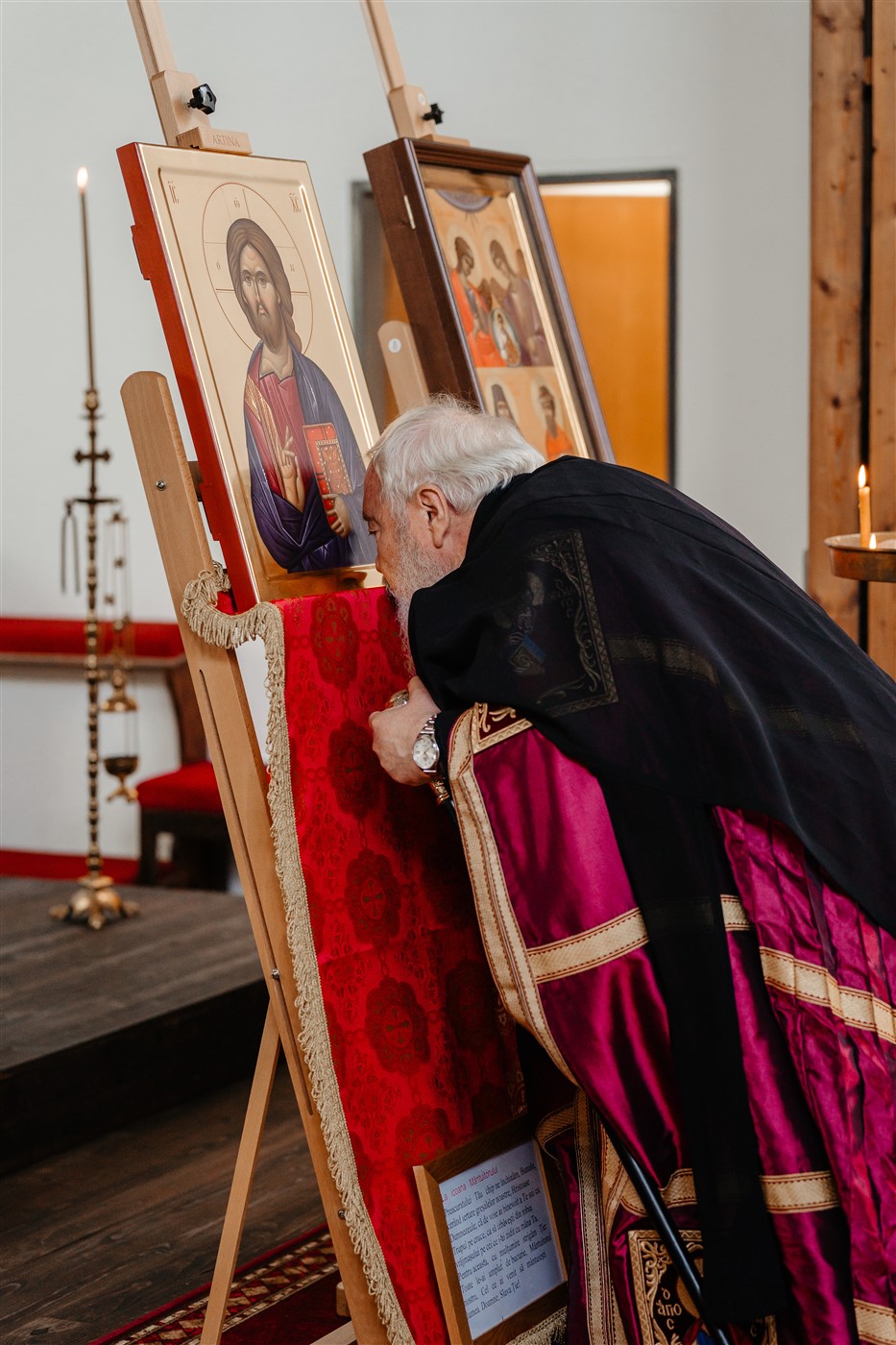 Răspunsurile la strană au fost date în limba germană, în stil bizantin, de tinerii Matthias El-Far, Ammar Sayegh, la care s-a alăturat și protopsaltul român Claudiu Morteanu.