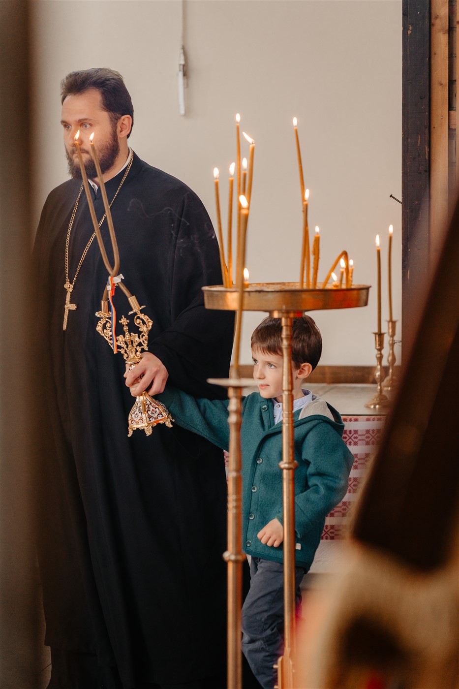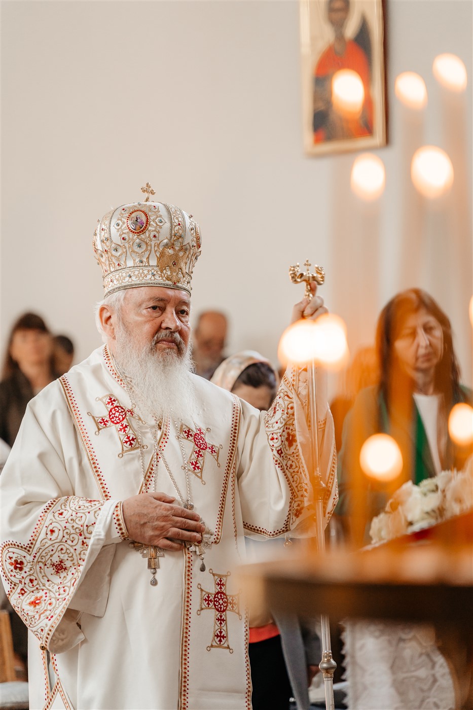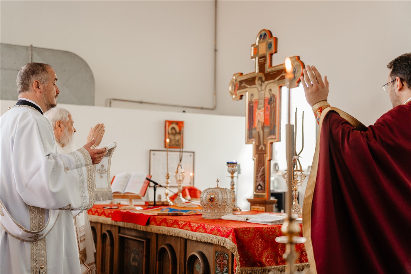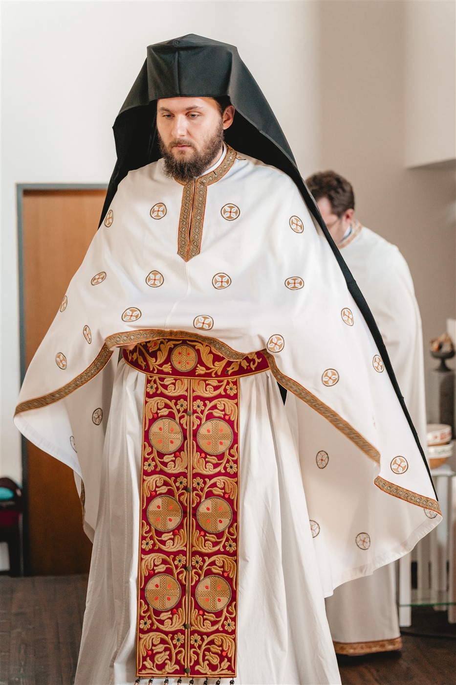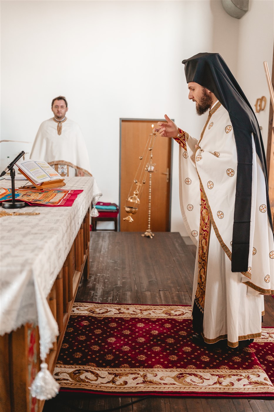 Răspunsurile la strană au fost date în limba germană, în stil bizantin, de tinerii Matthias El-Far, Ammar Sayegh, la care s-a alăturat și protopsaltul român Claudiu Morteanu.