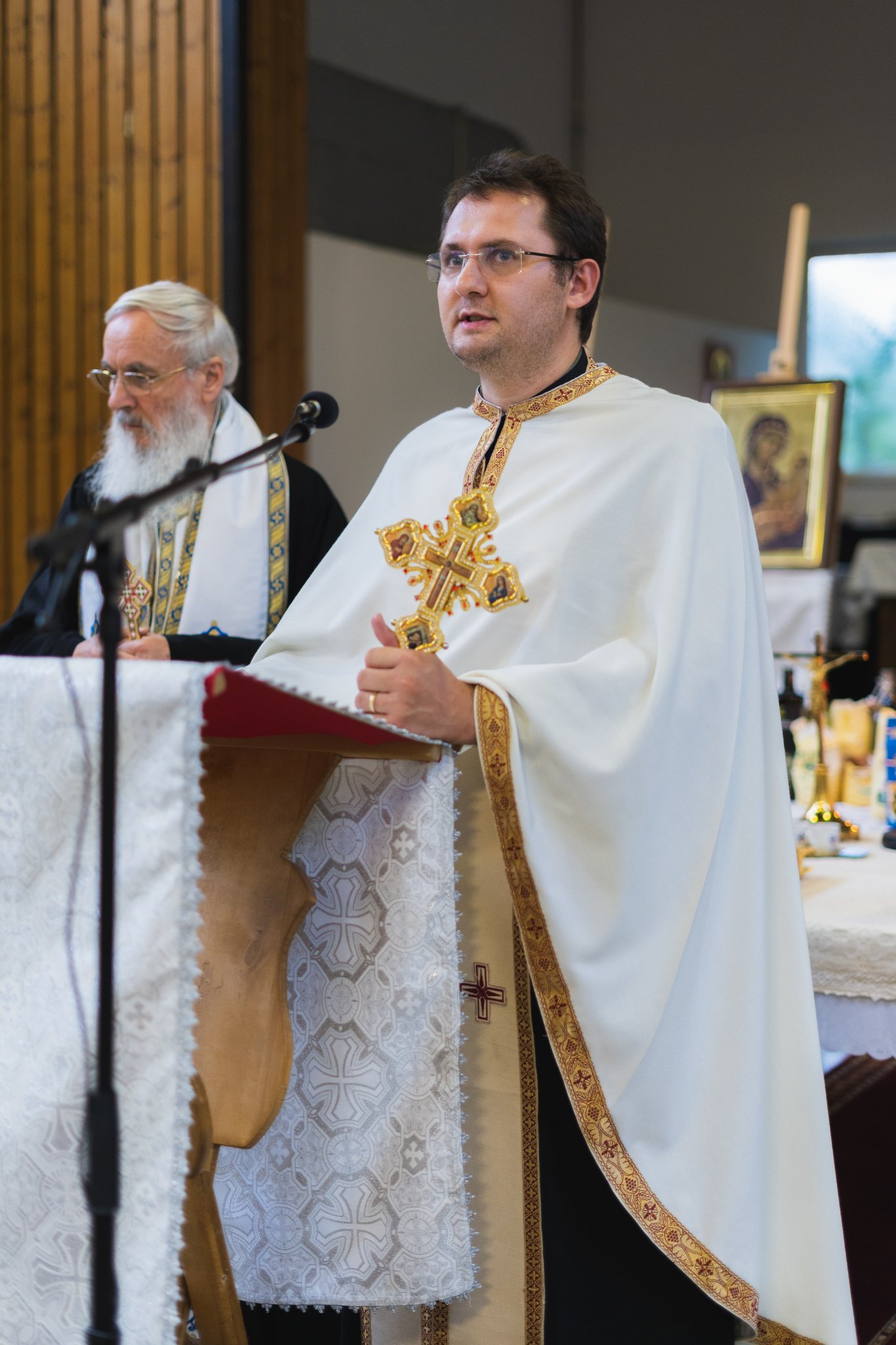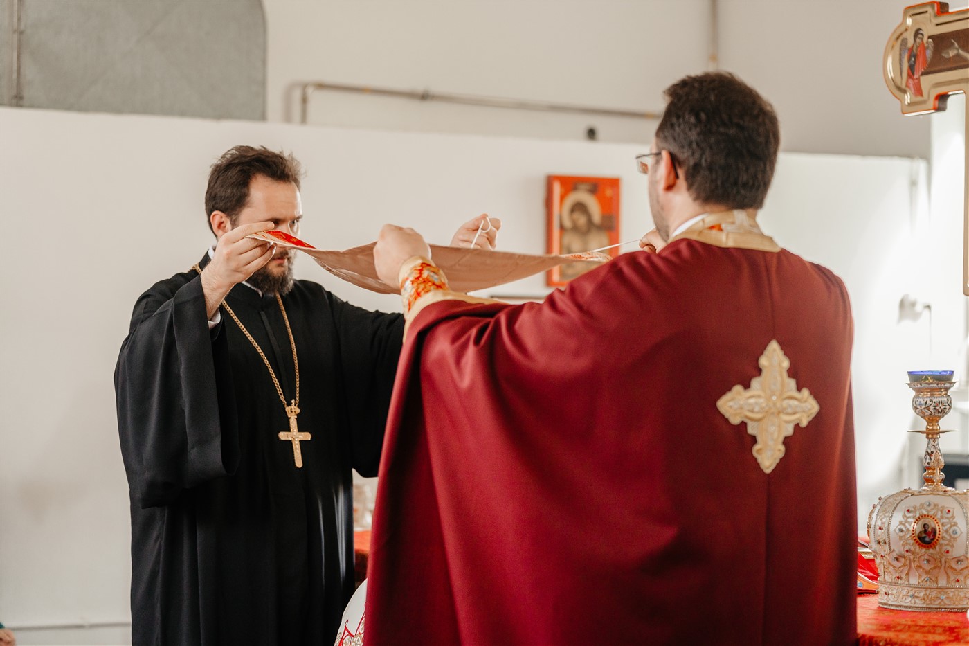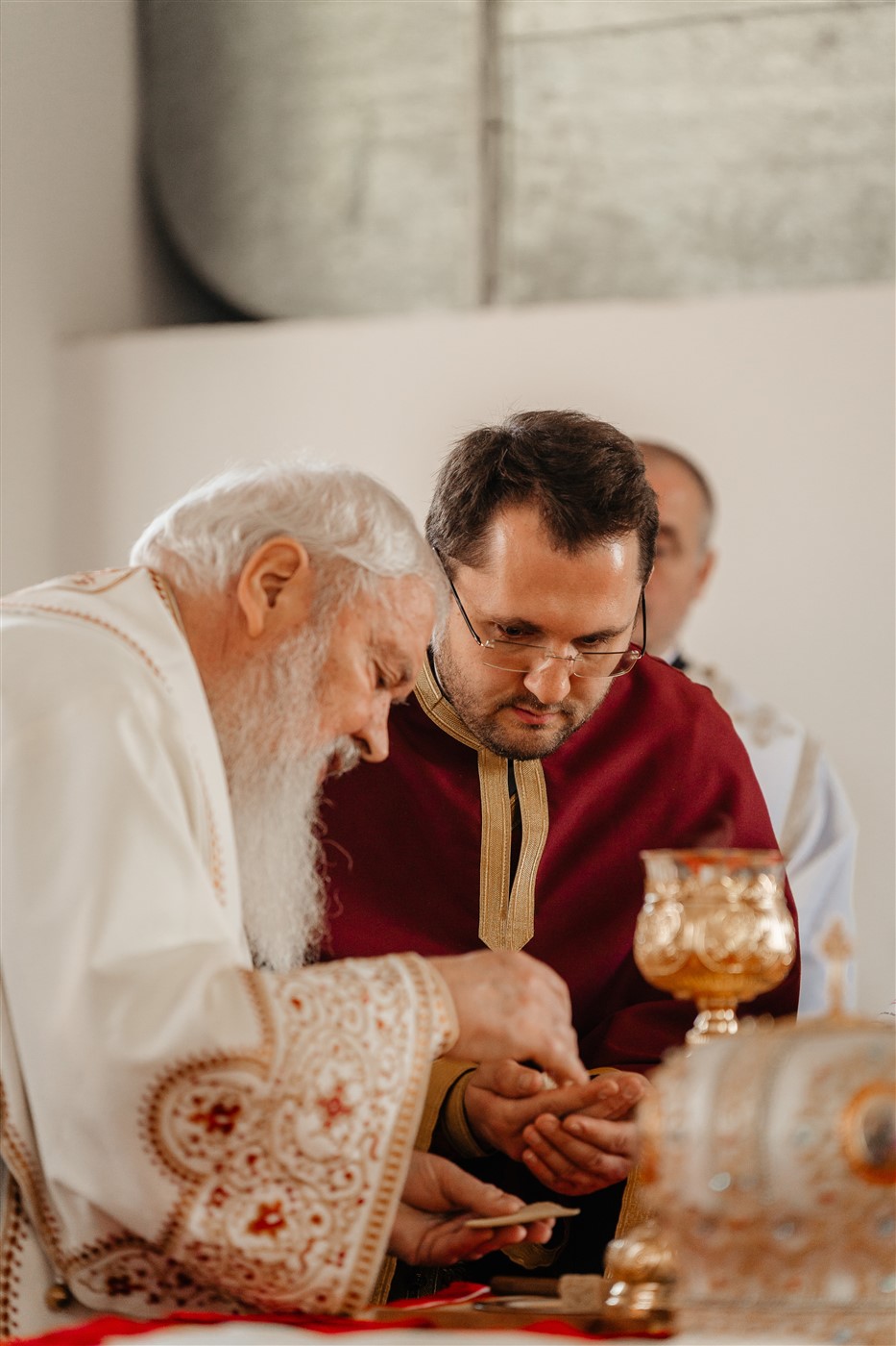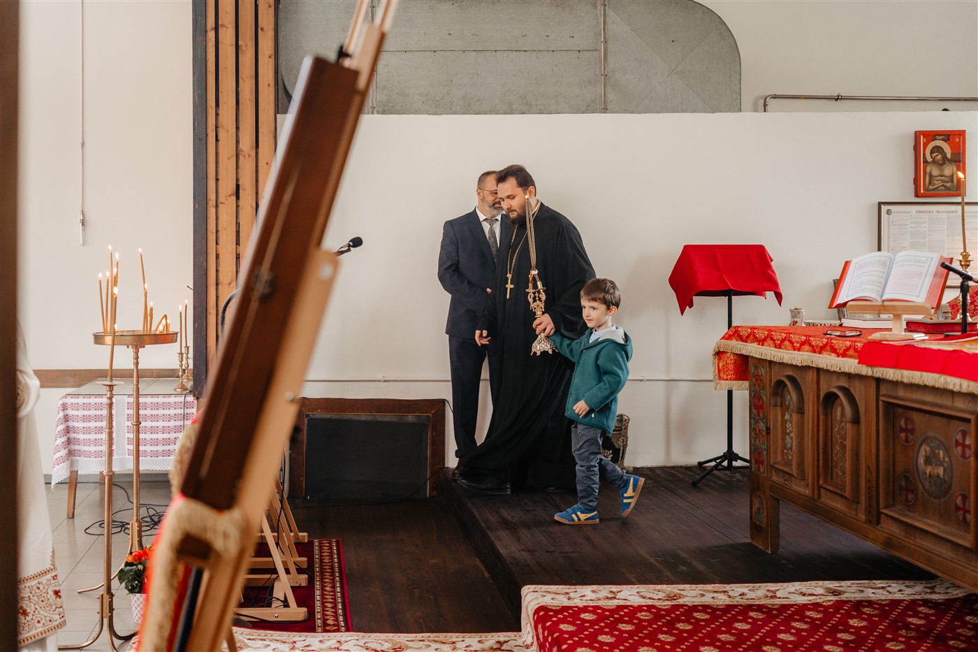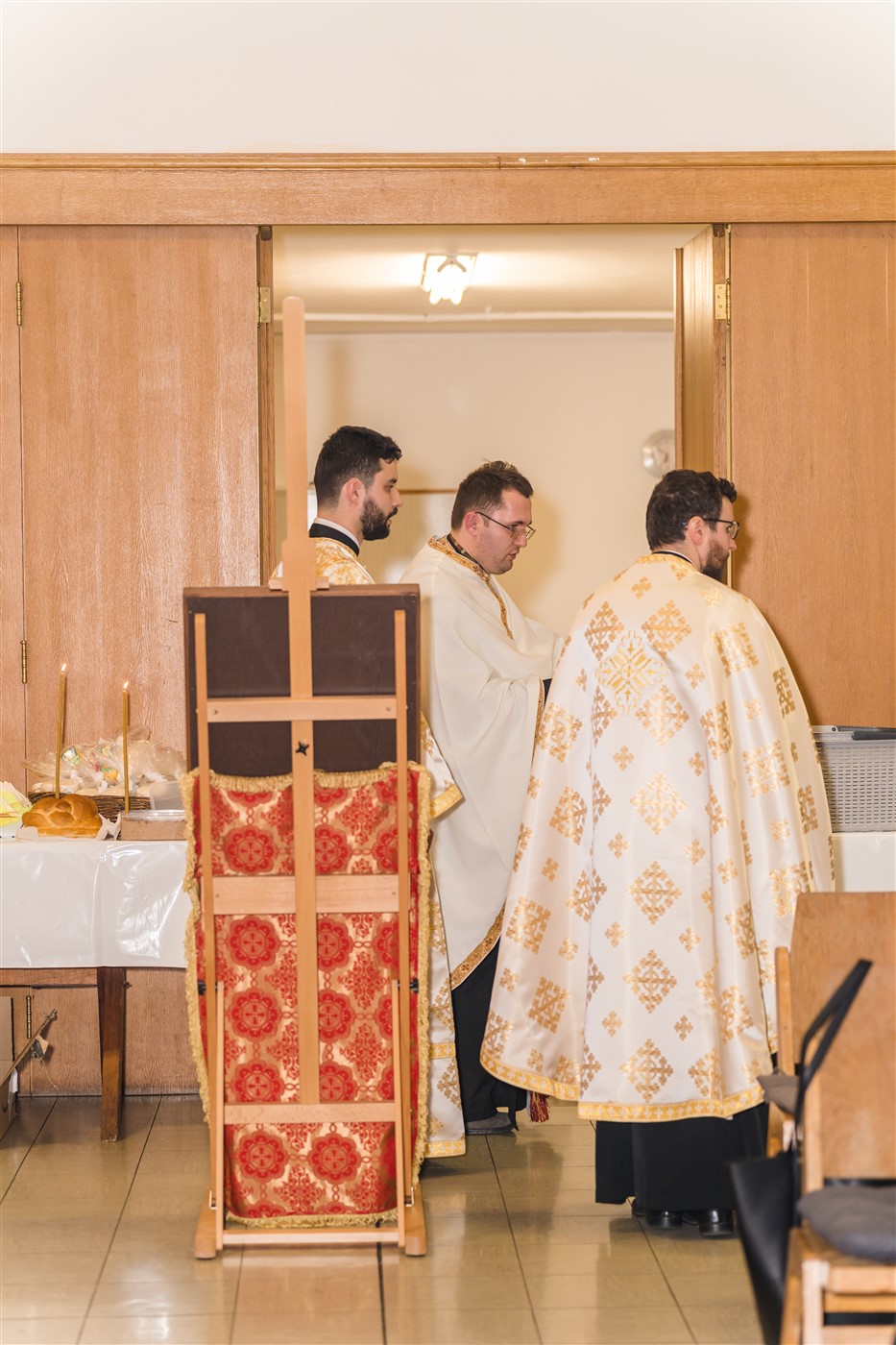 Răspunsurile la strană au fost date în limba germană, în stil bizantin, de tinerii Matthias El-Far, Ammar Sayegh, la care s-a alăturat și protopsaltul român Claudiu Morteanu.