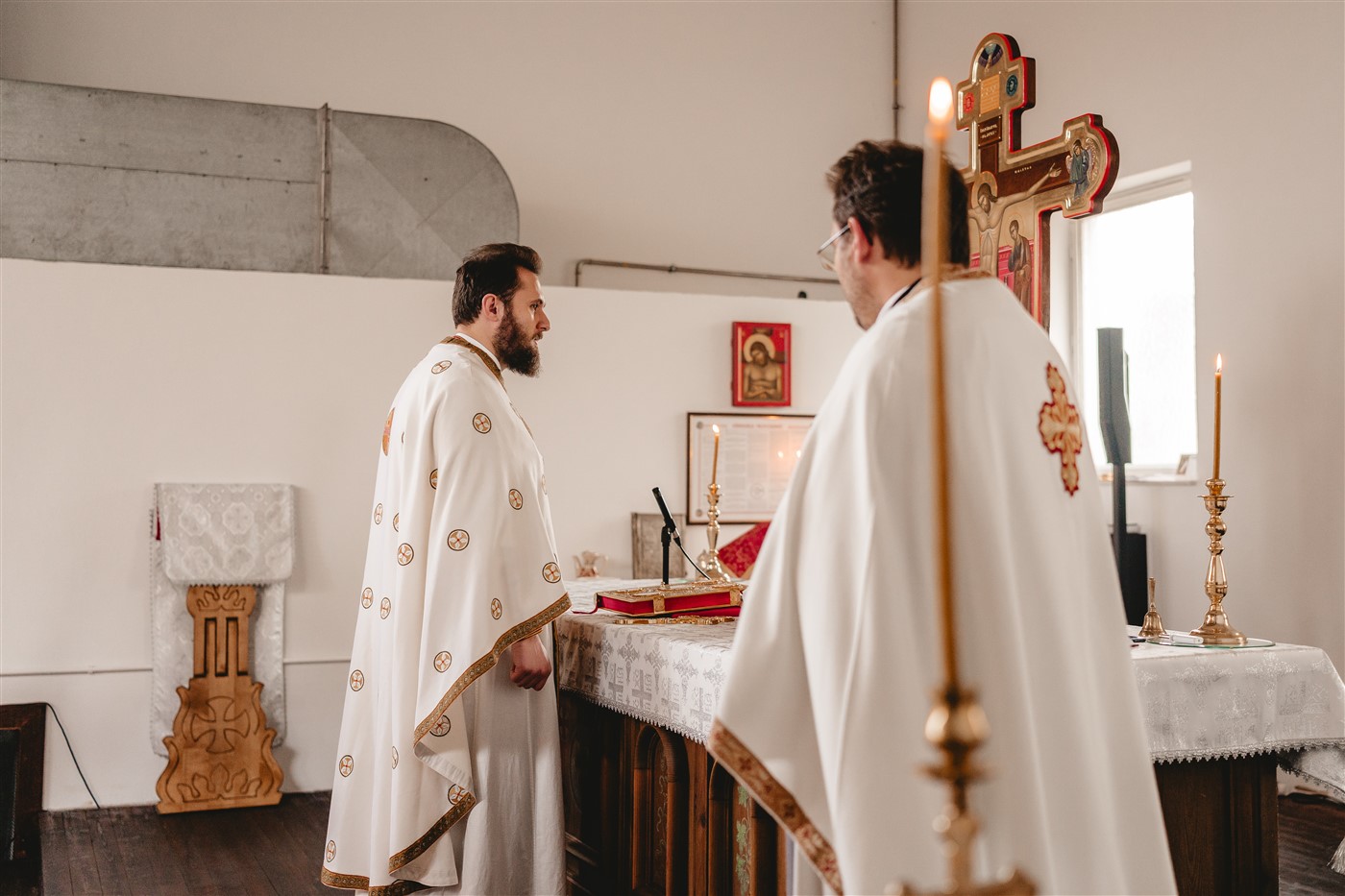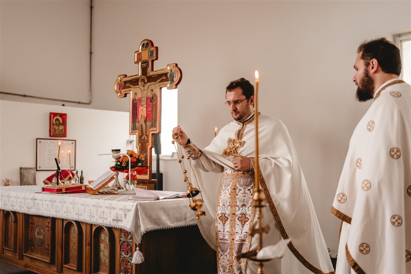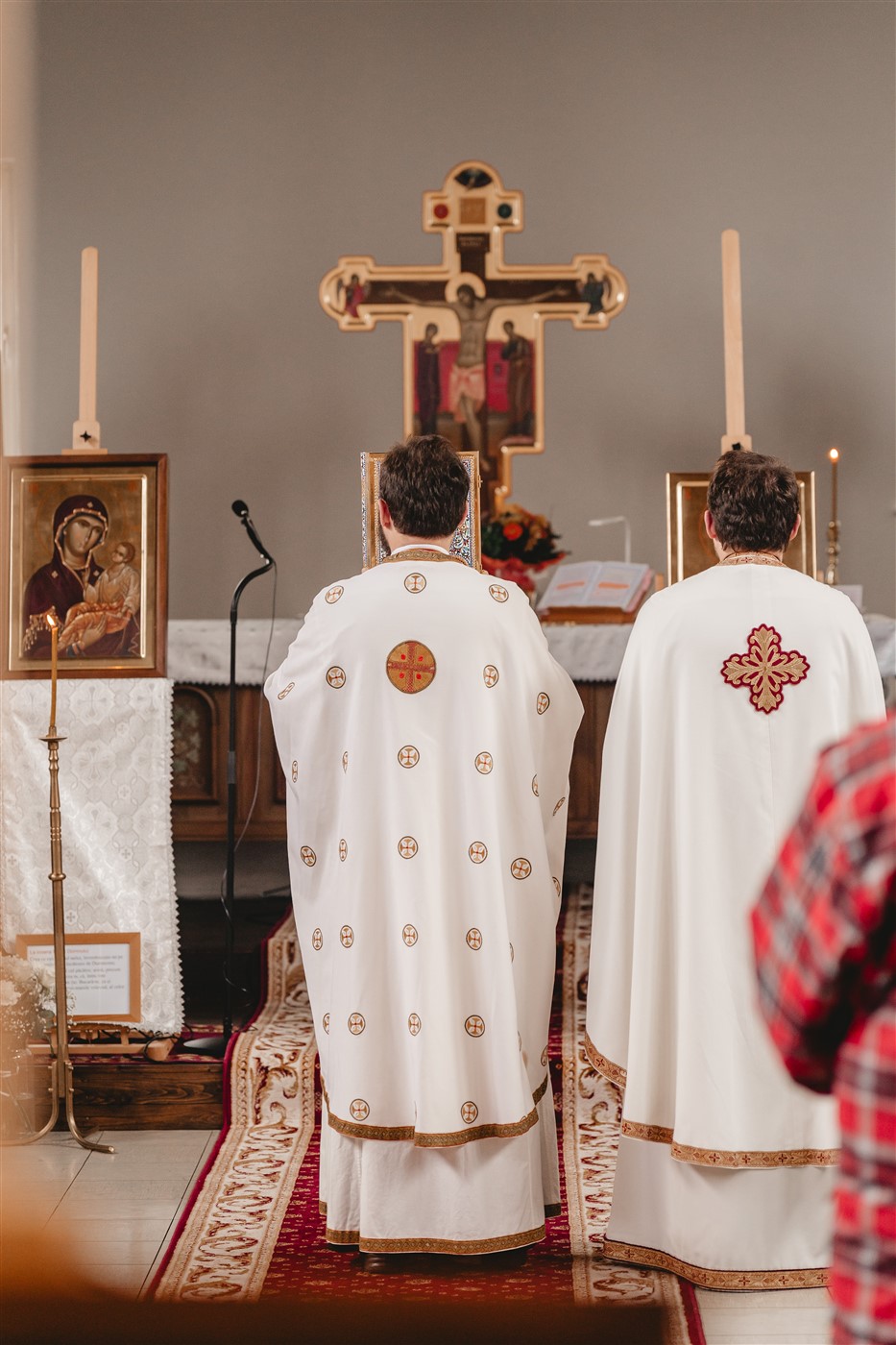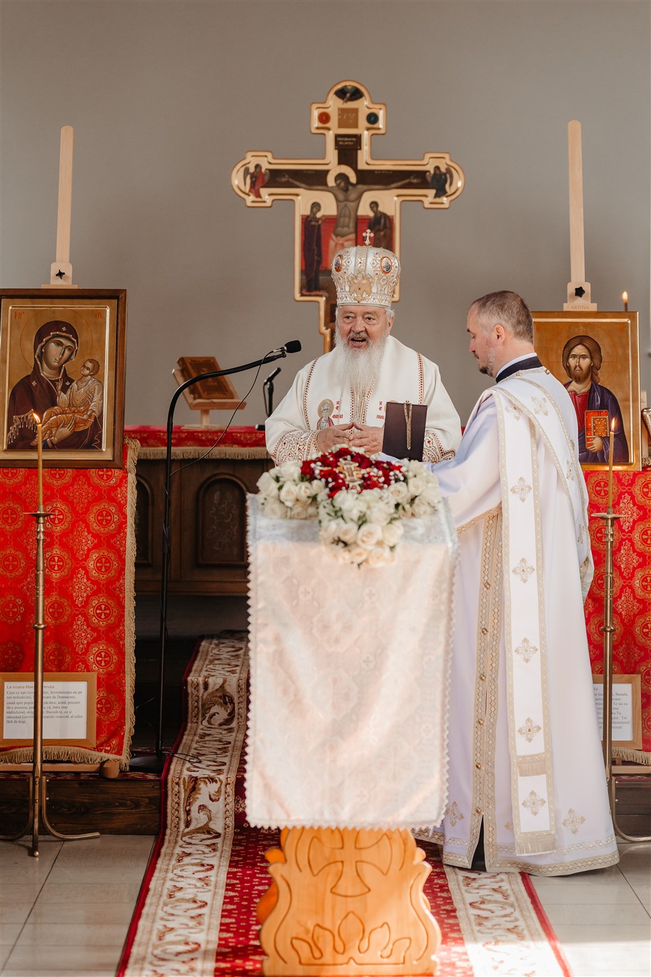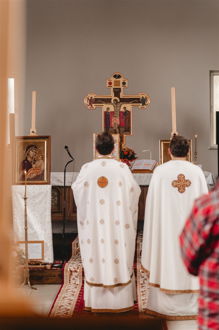 Răspunsurile la strană au fost date în limba germană, în stil bizantin, de tinerii Matthias El-Far, Ammar Sayegh, la care s-a alăturat și protopsaltul român Claudiu Morteanu.