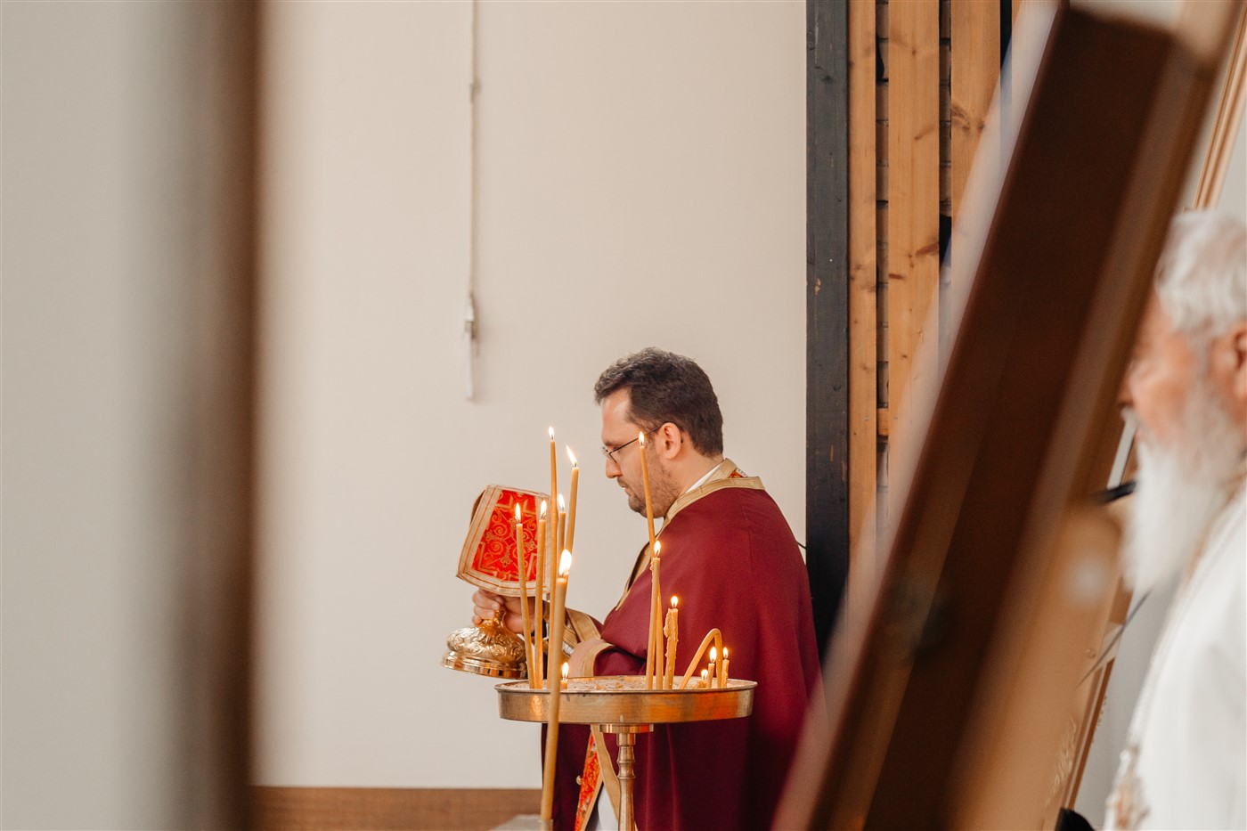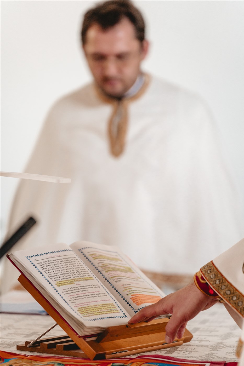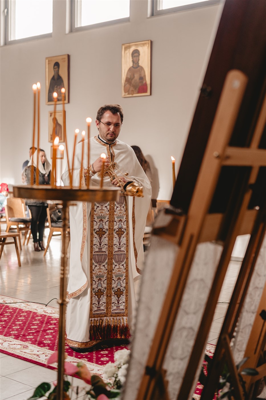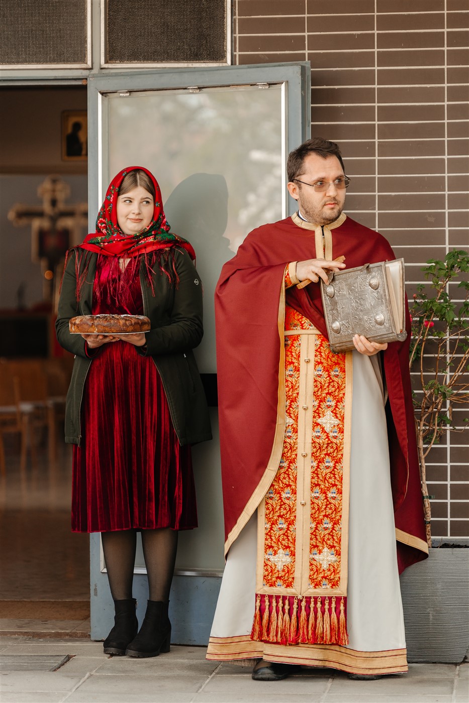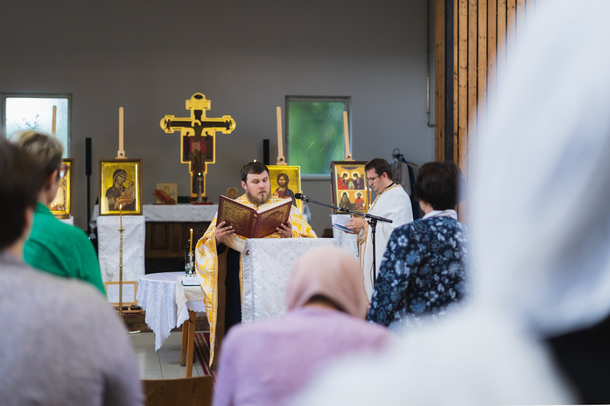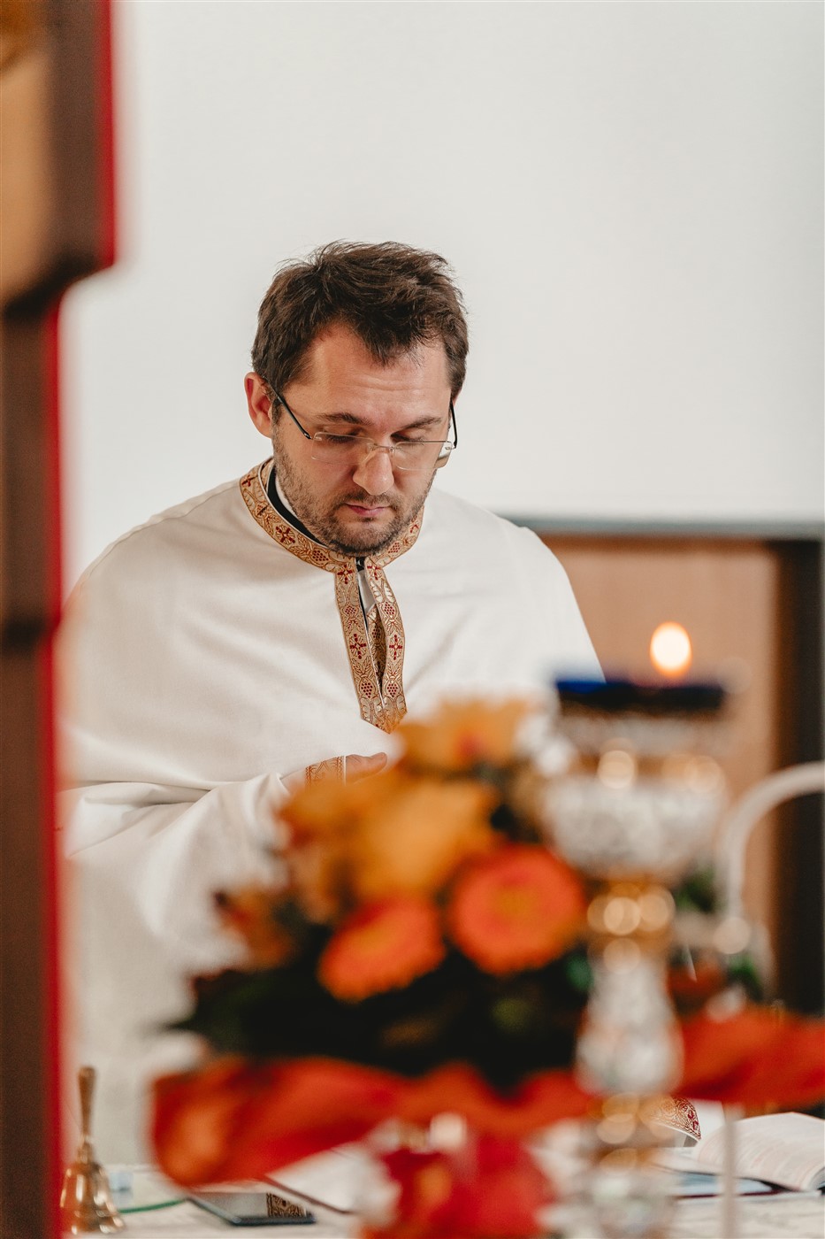 Răspunsurile la strană au fost date în limba germană, în stil bizantin, de tinerii Matthias El-Far, Ammar Sayegh, la care s-a alăturat și protopsaltul român Claudiu Morteanu.