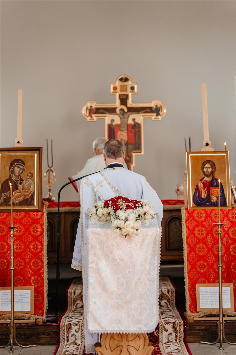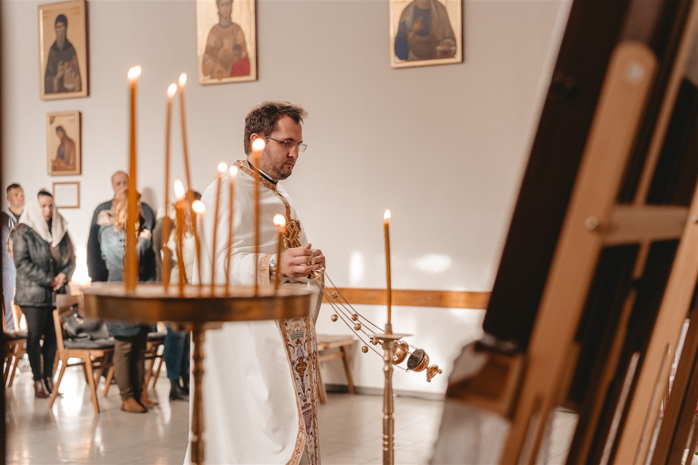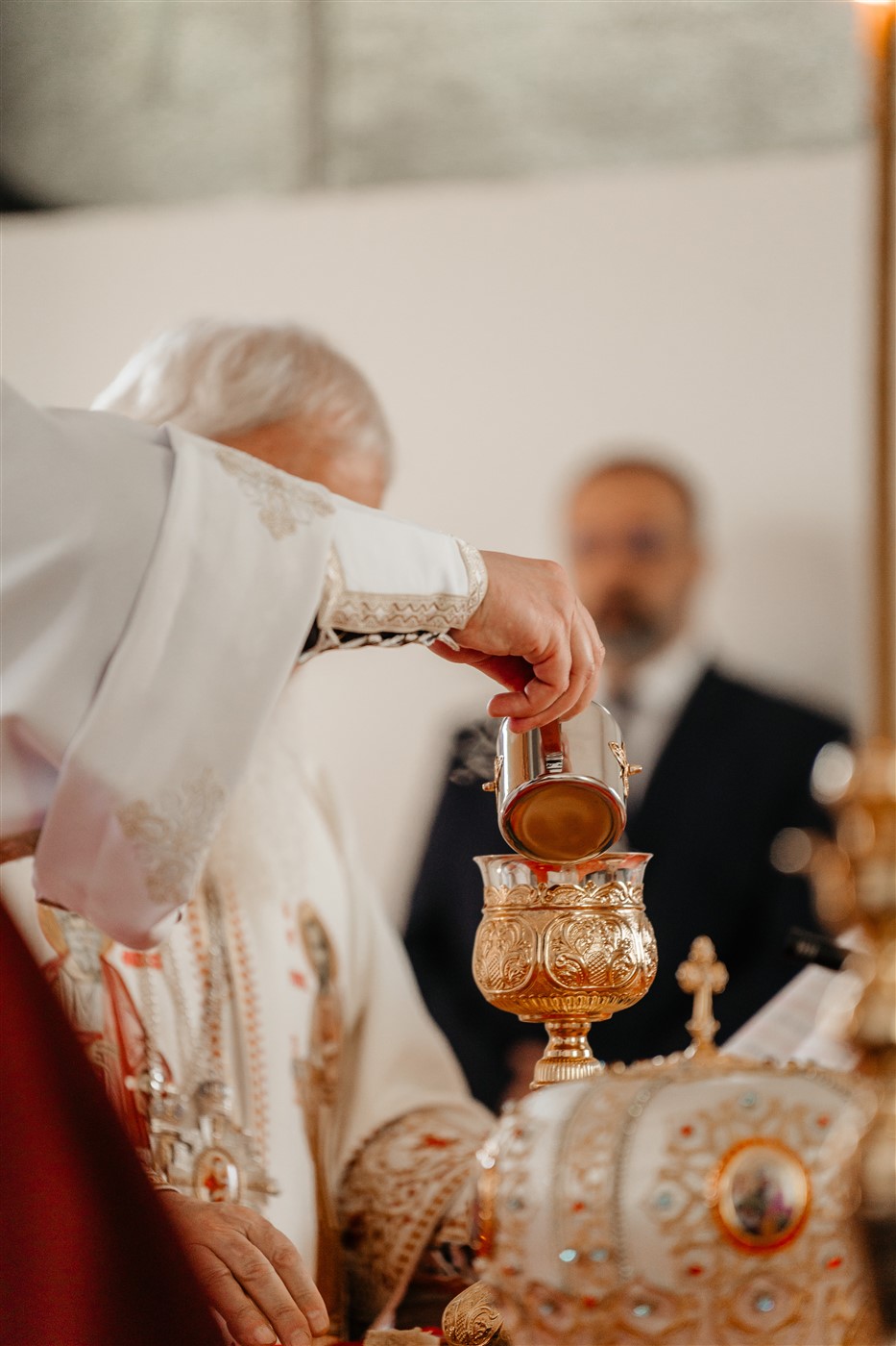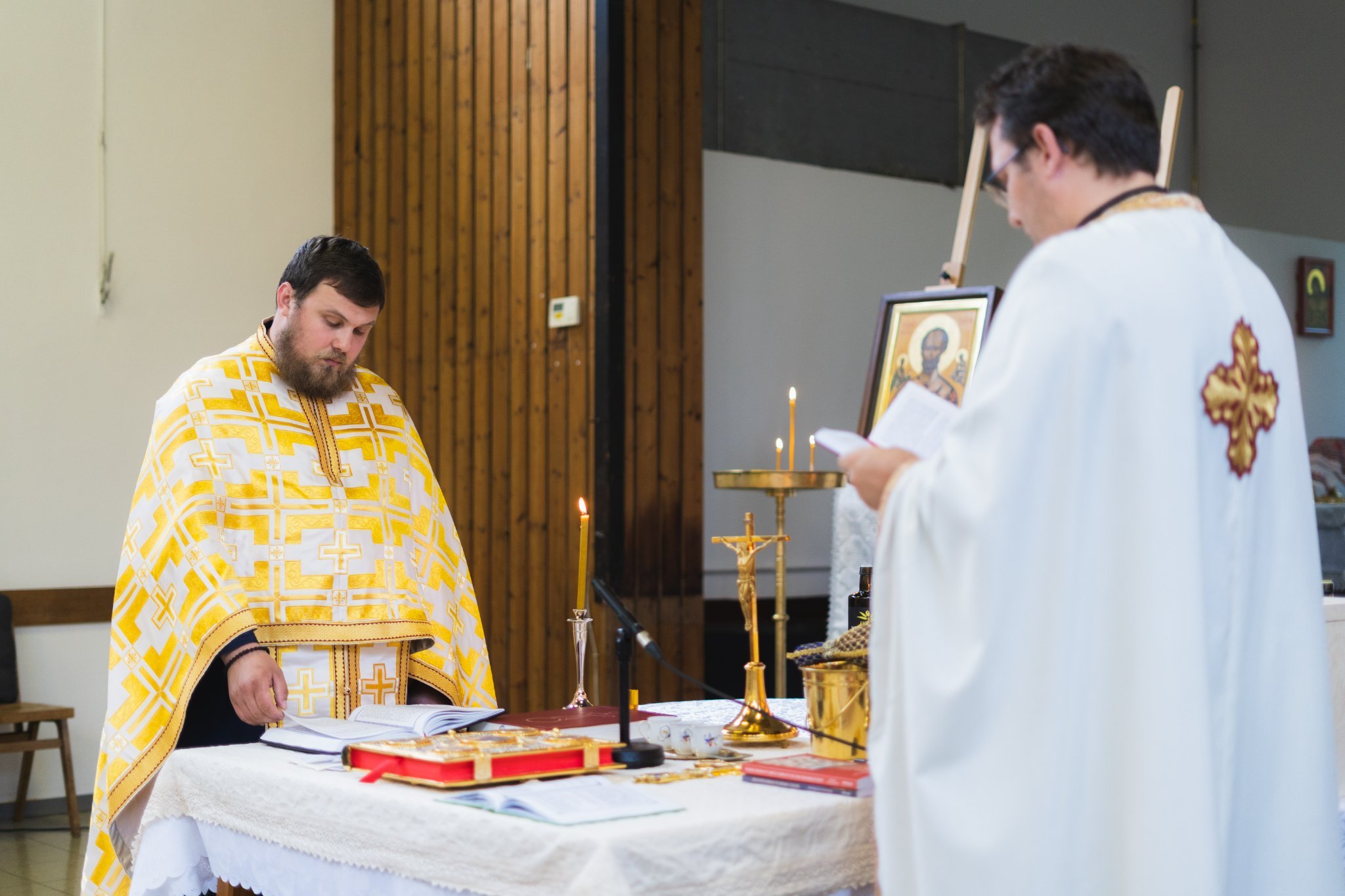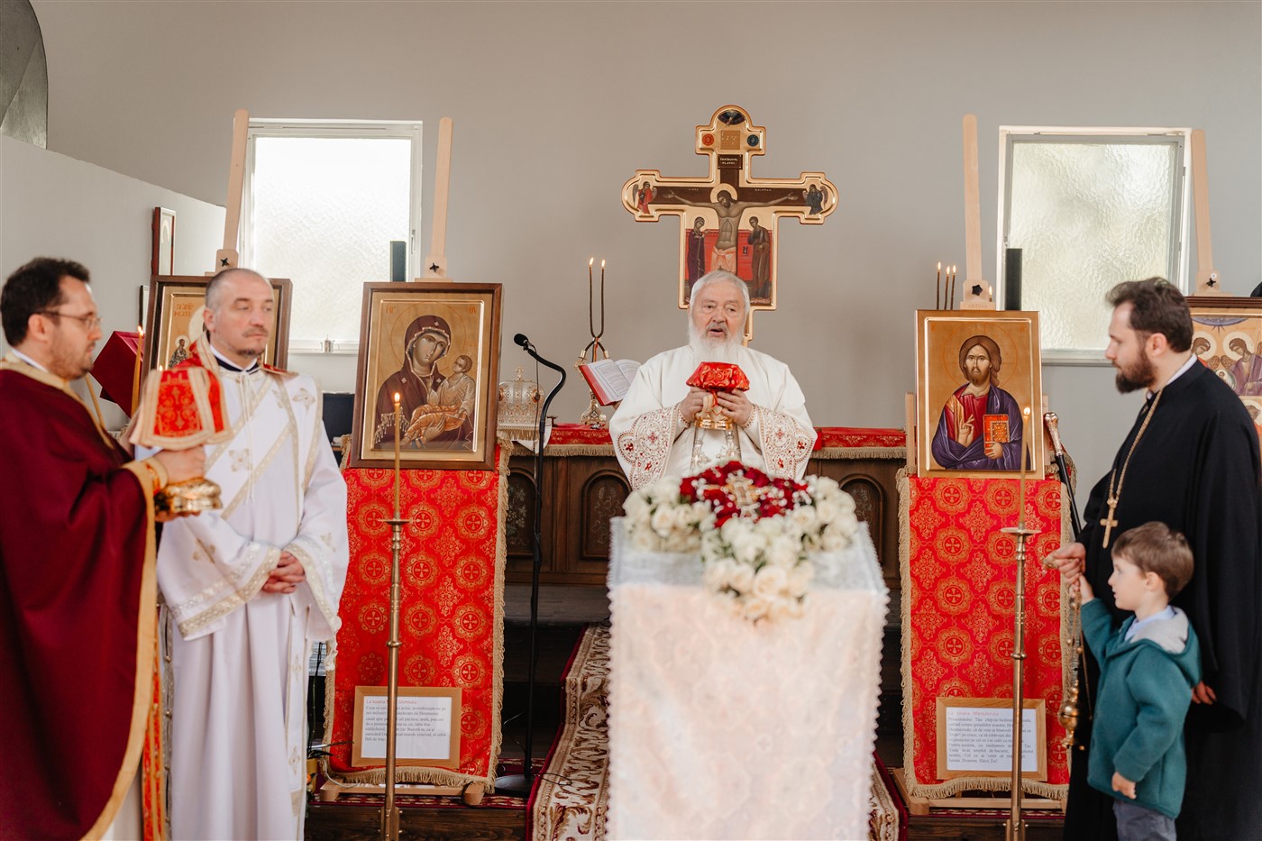 Răspunsurile la strană au fost date în limba germană, în stil bizantin, de tinerii Matthias El-Far, Ammar Sayegh, la care s-a alăturat și protopsaltul român Claudiu Morteanu.