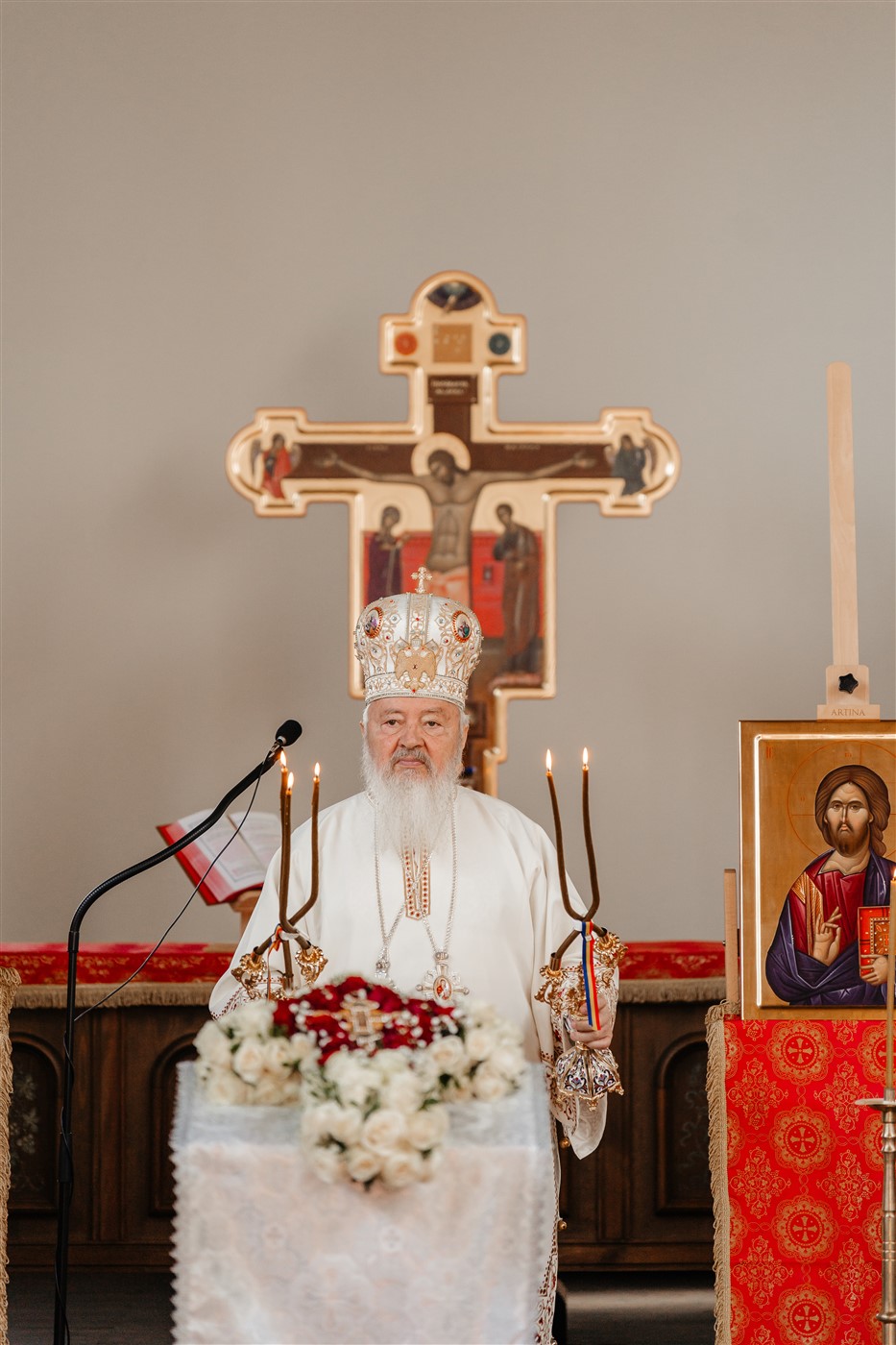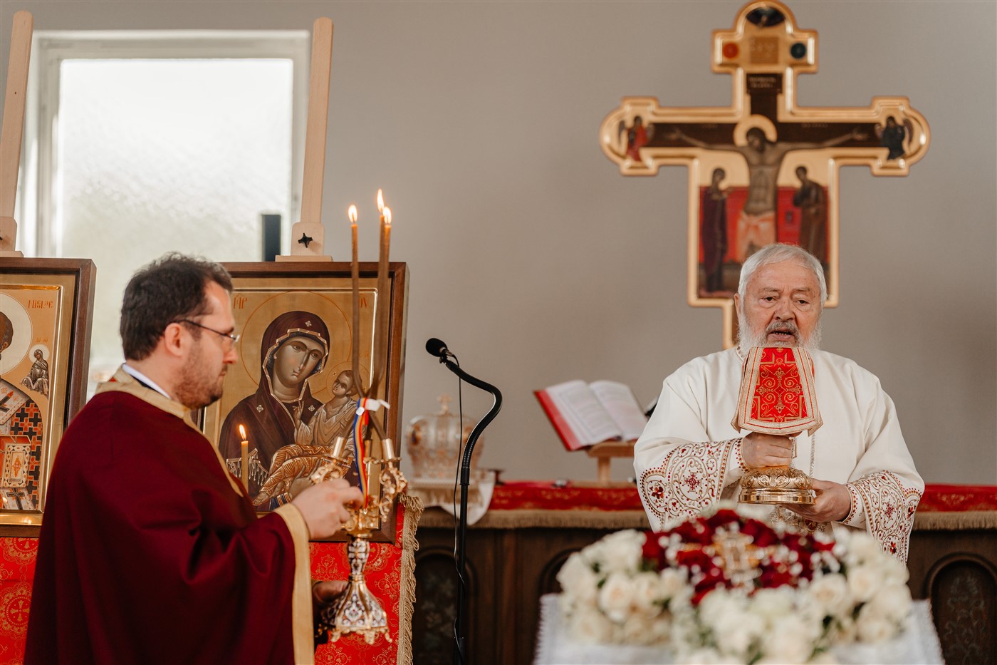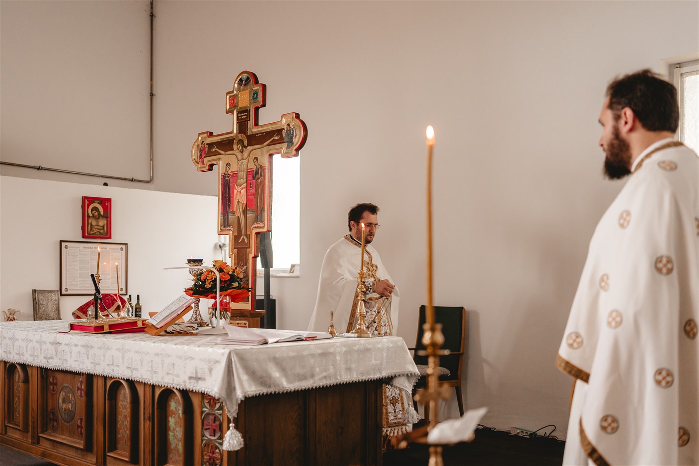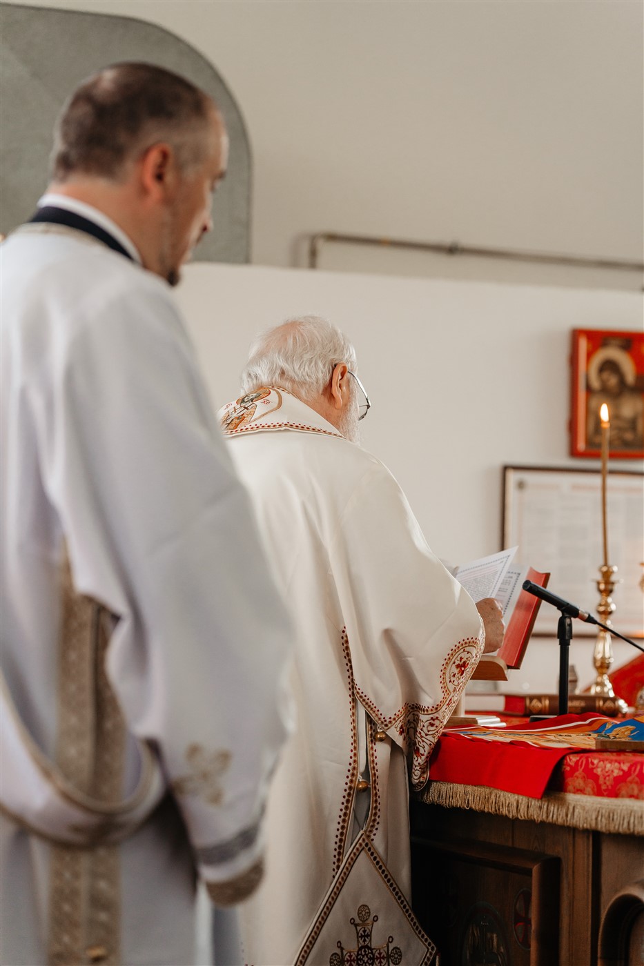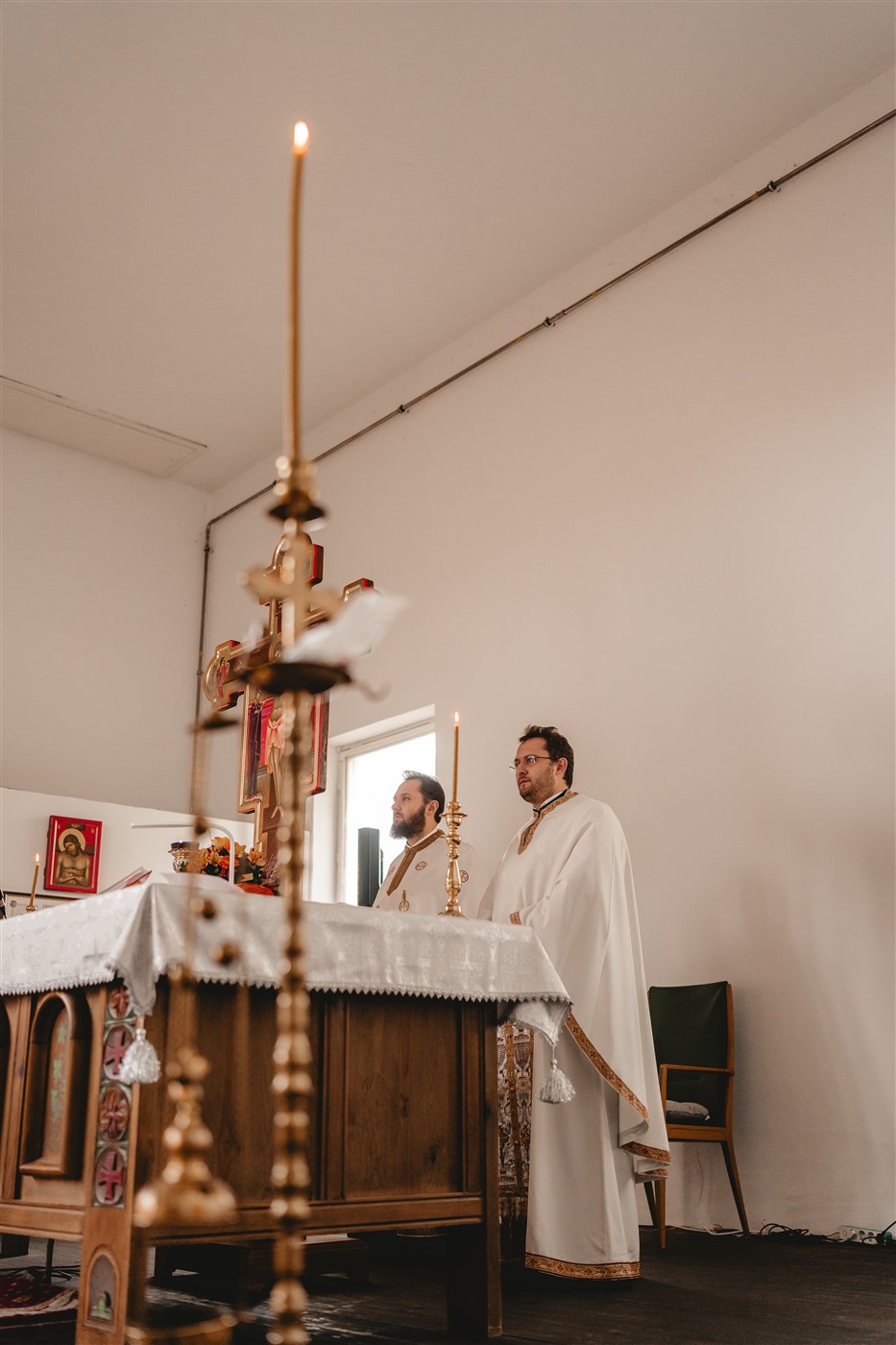 Răspunsurile la strană au fost date în limba germană, în stil bizantin, de tinerii Matthias El-Far, Ammar Sayegh, la care s-a alăturat și protopsaltul român Claudiu Morteanu.