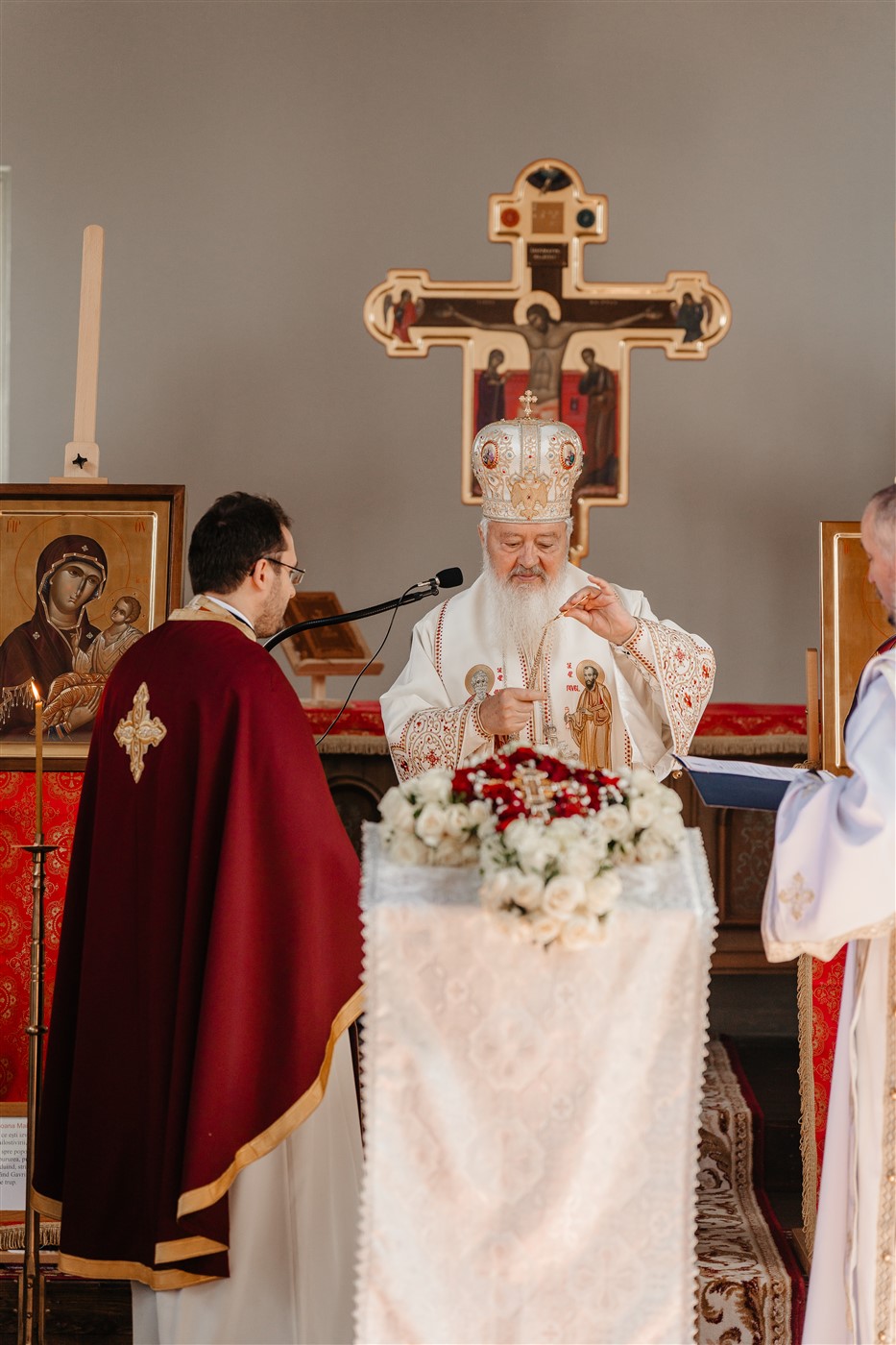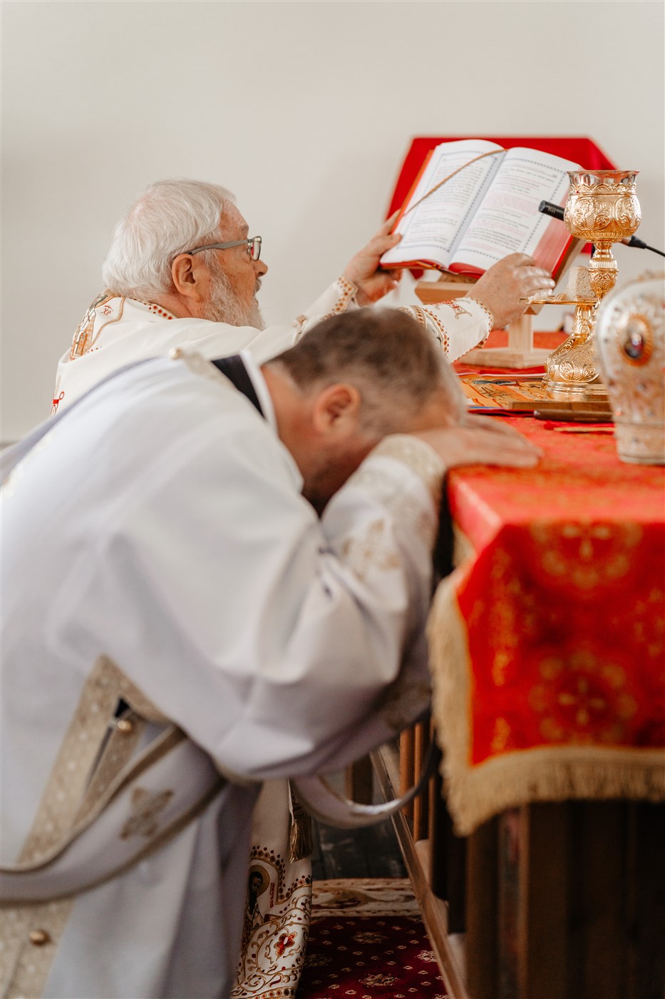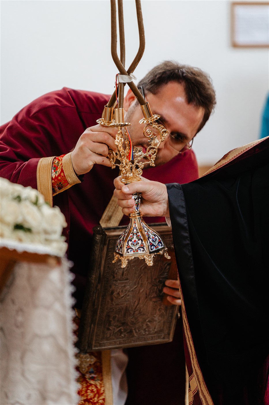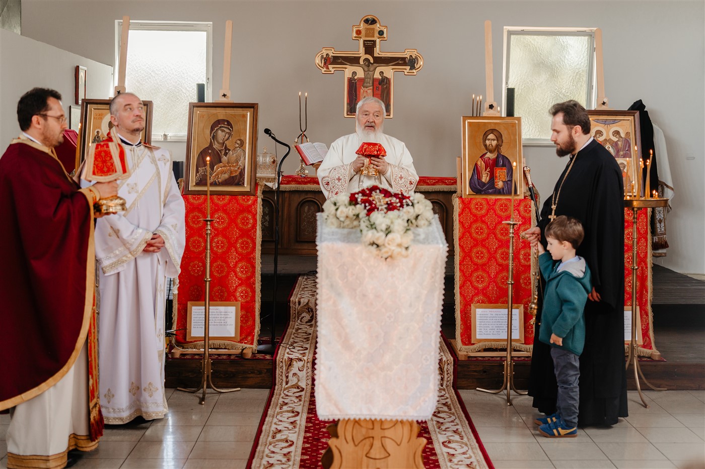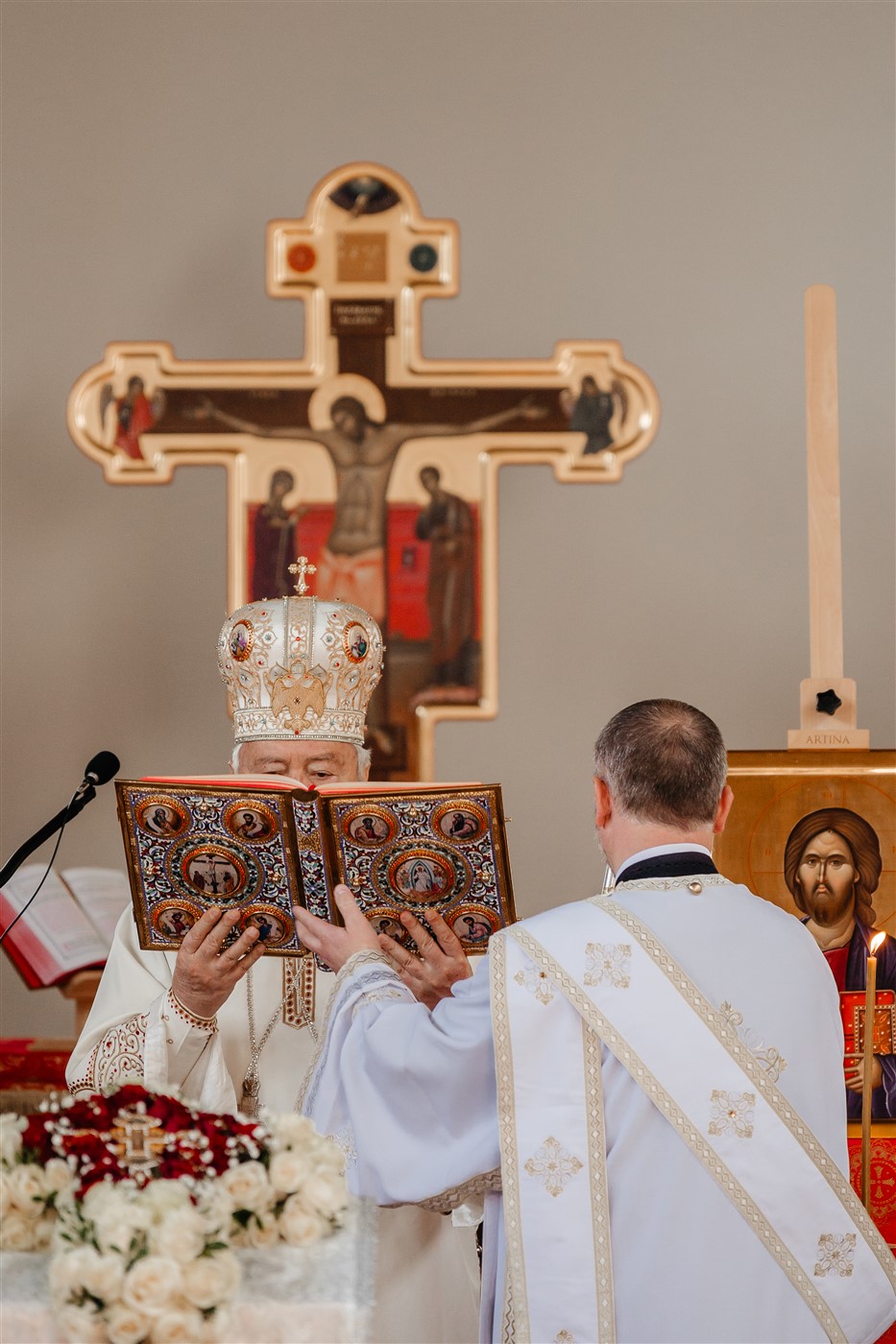 Răspunsurile la strană au fost date în limba germană, în stil bizantin, de tinerii Matthias El-Far, Ammar Sayegh, la care s-a alăturat și protopsaltul român Claudiu Morteanu.