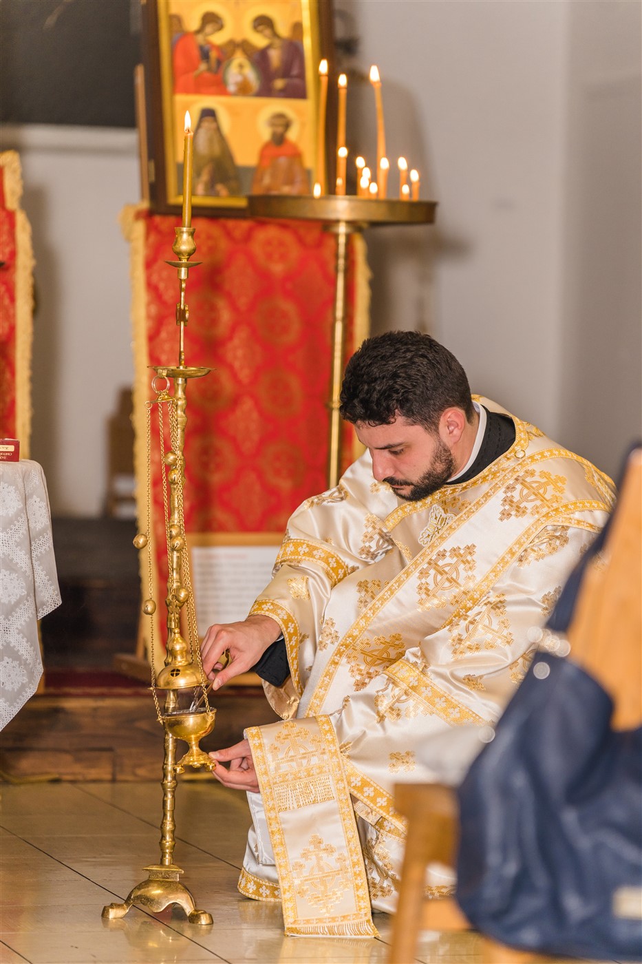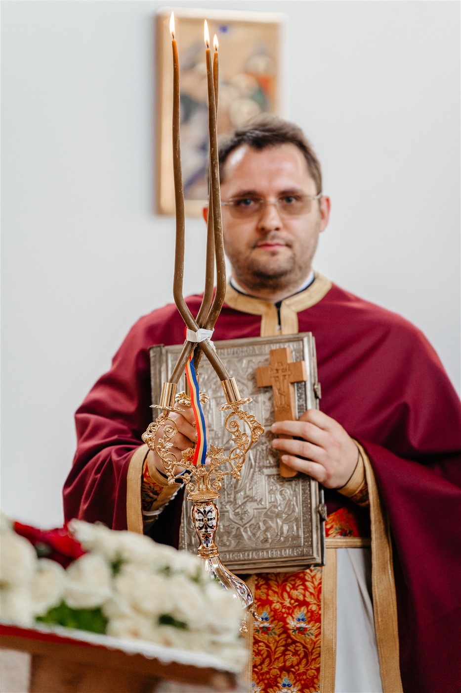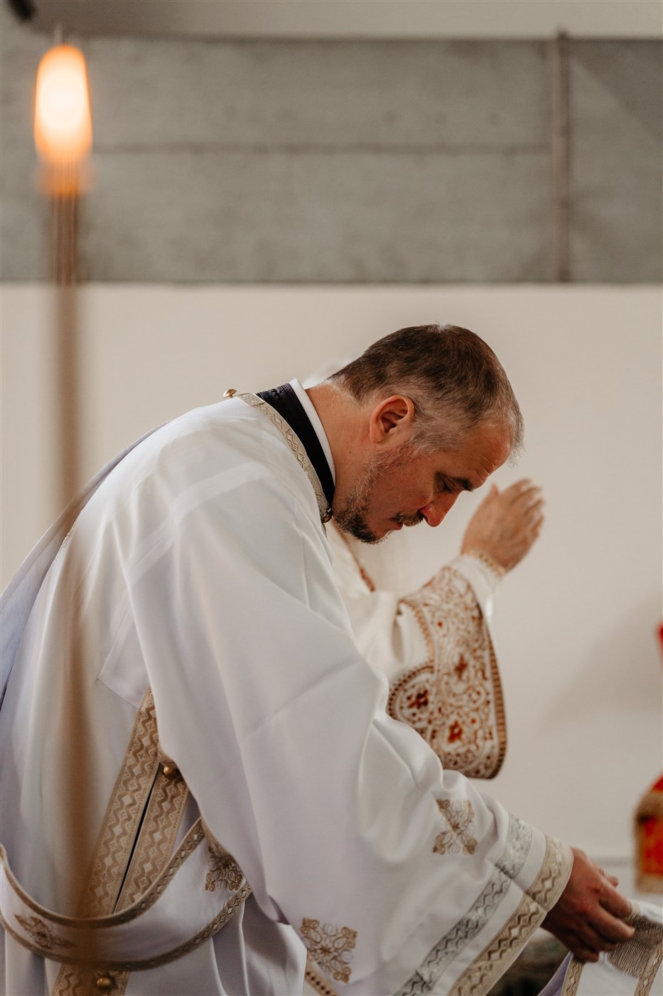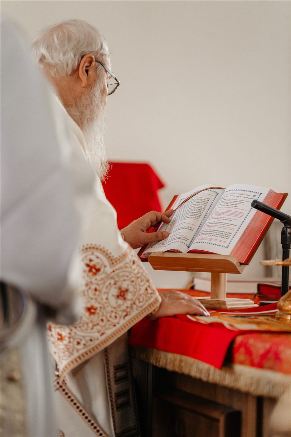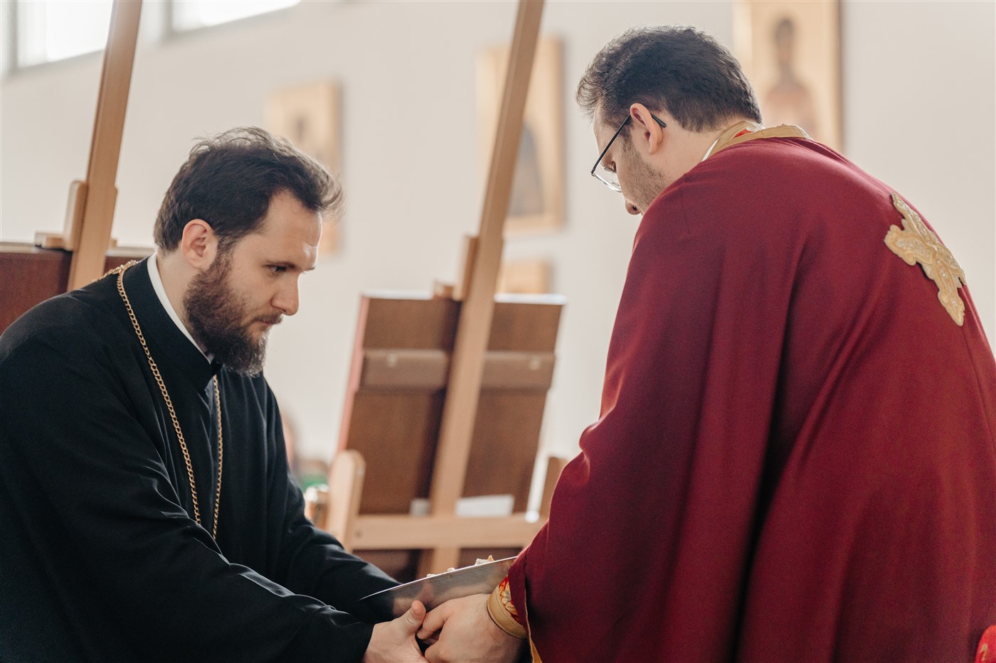 Răspunsurile la strană au fost date în limba germană, în stil bizantin, de tinerii Matthias El-Far, Ammar Sayegh, la care s-a alăturat și protopsaltul român Claudiu Morteanu.