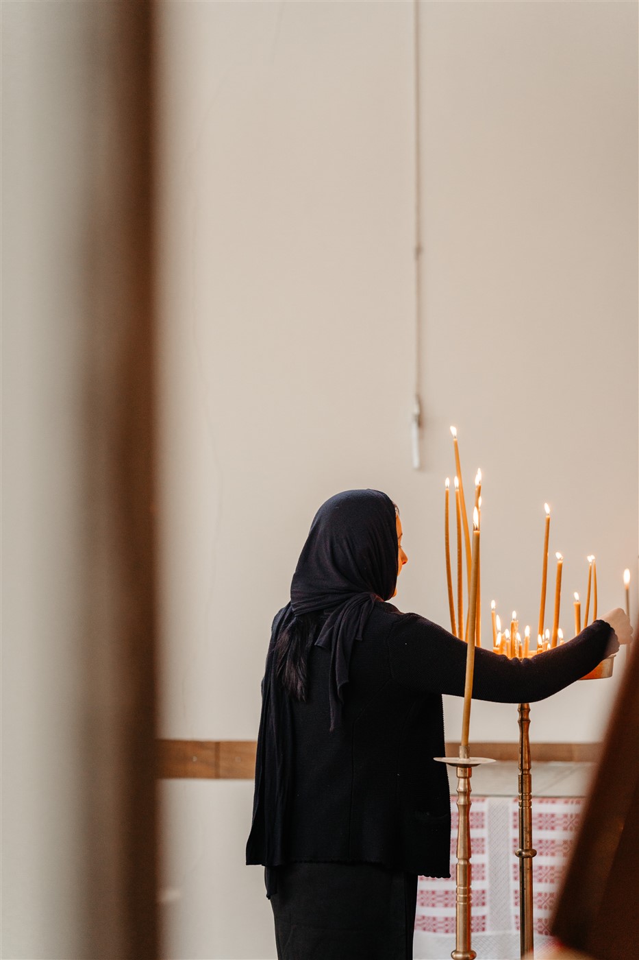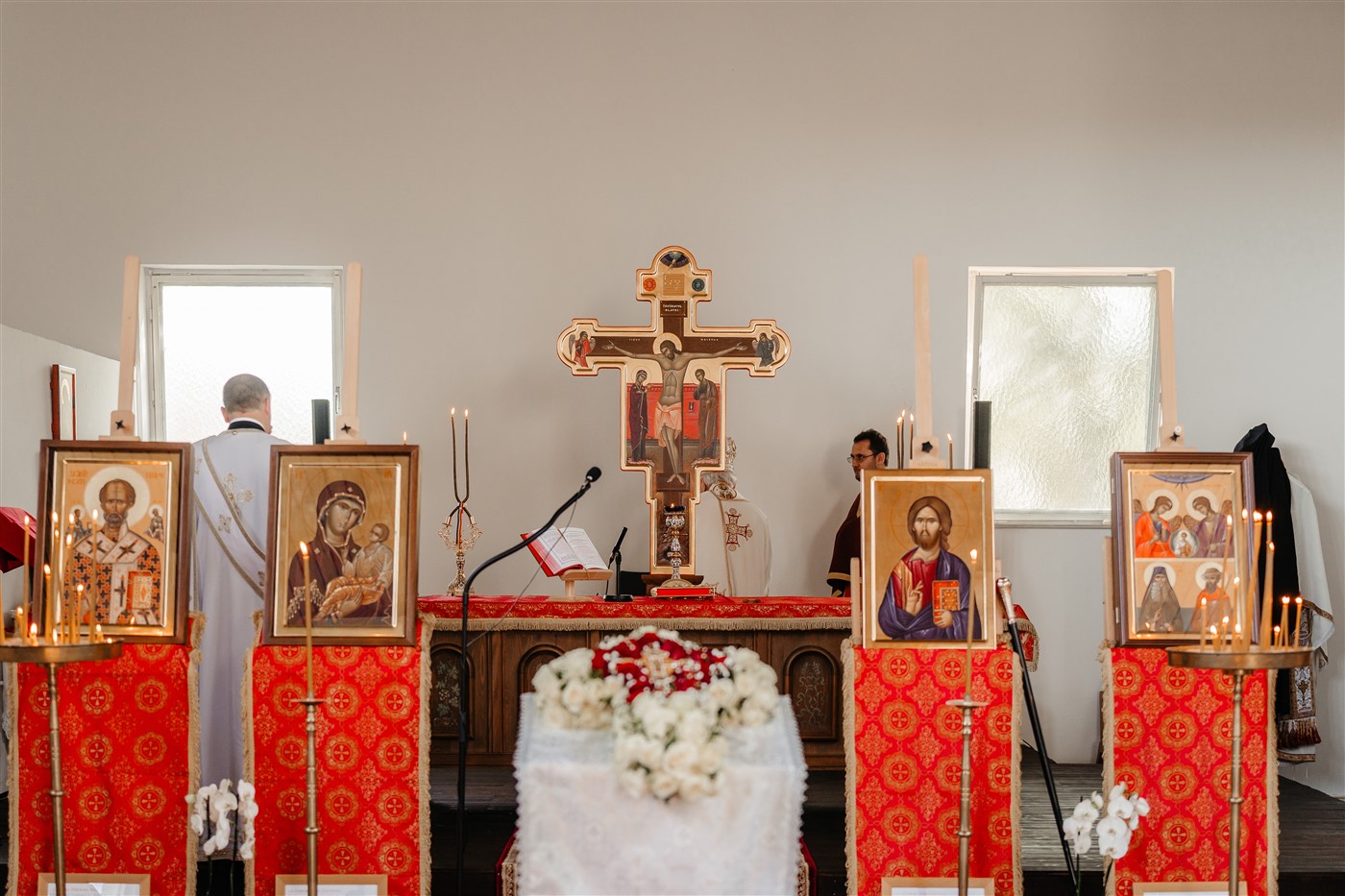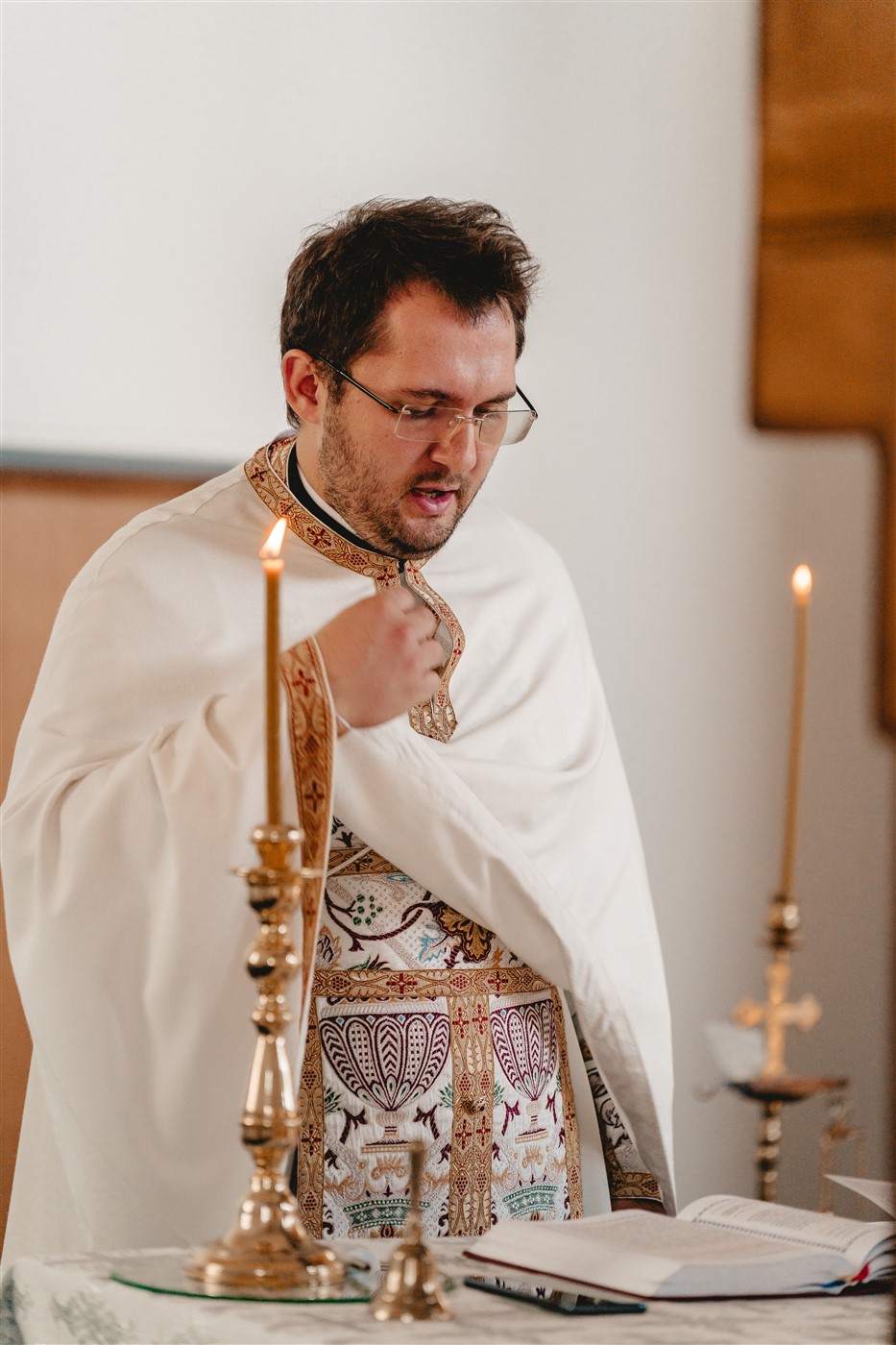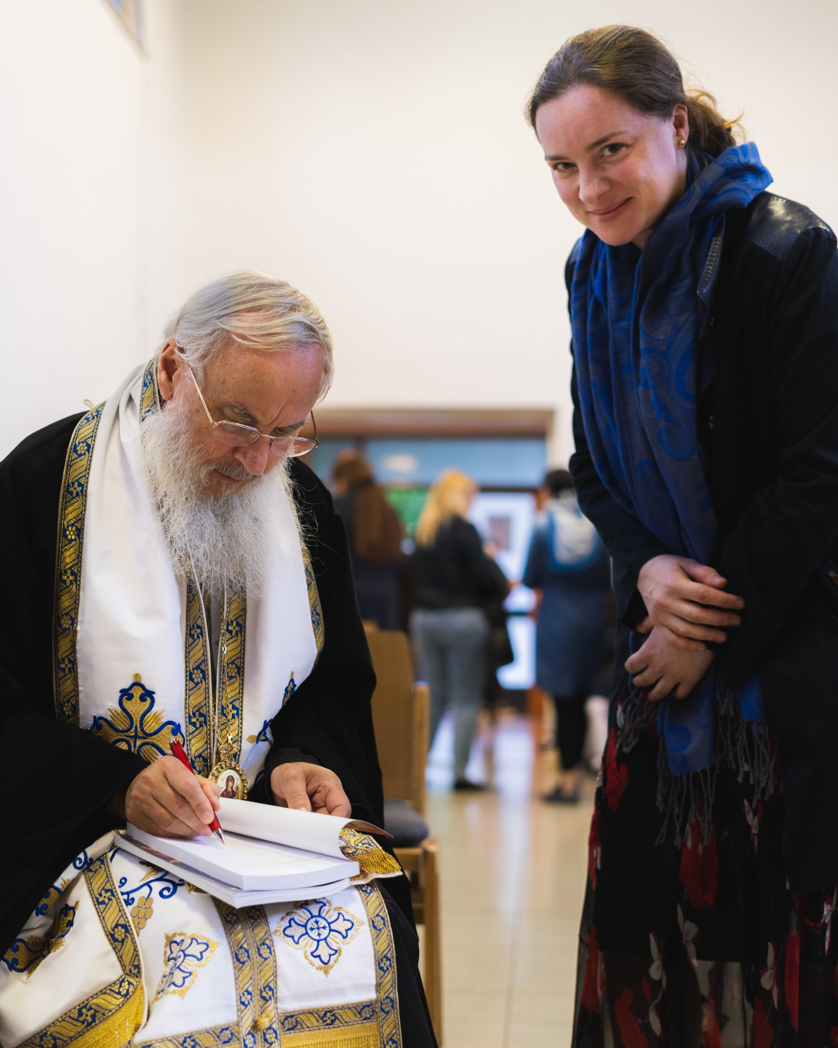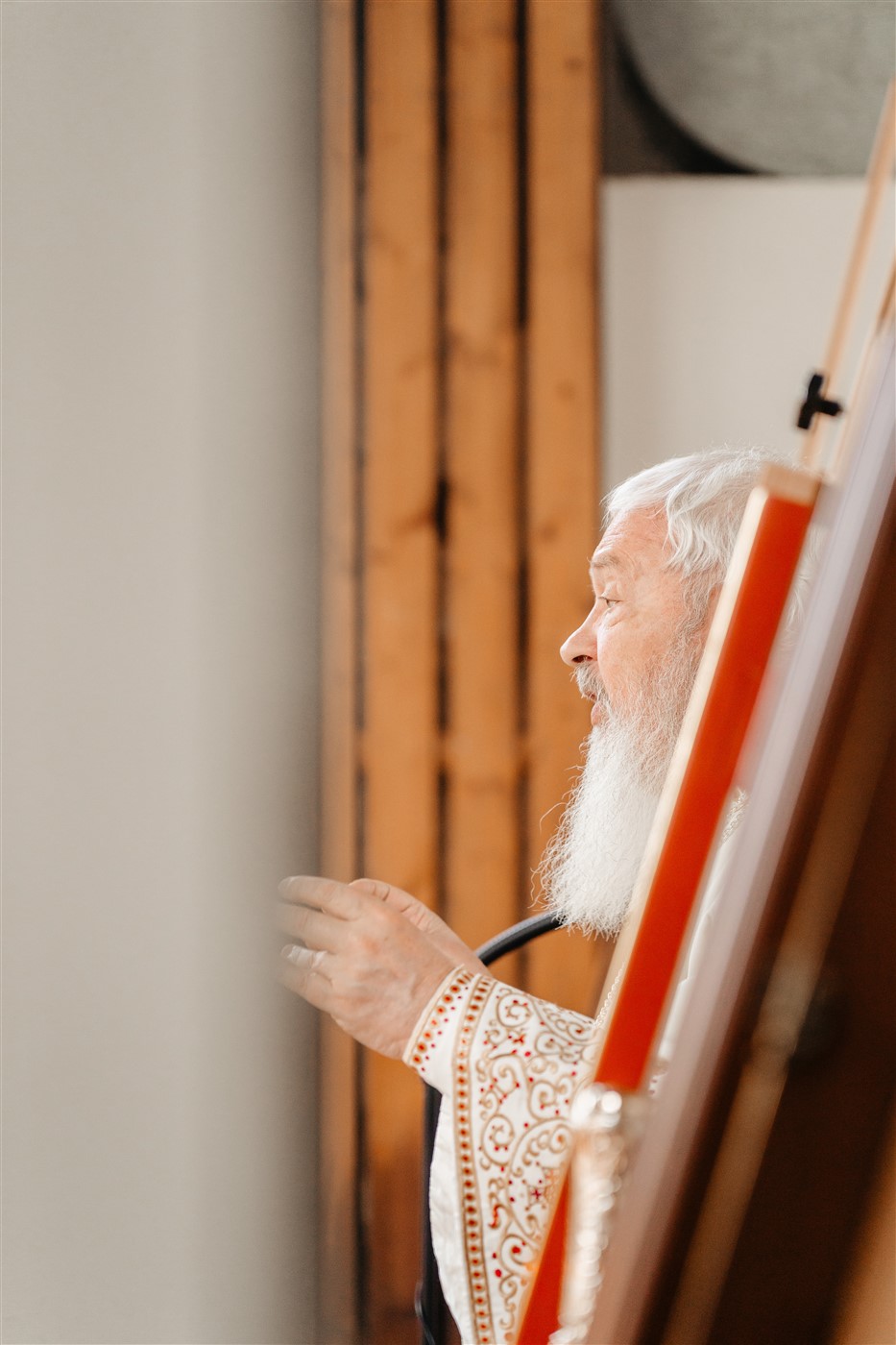 Răspunsurile la strană au fost date în limba germană, în stil bizantin, de tinerii Matthias El-Far, Ammar Sayegh, la care s-a alăturat și protopsaltul român Claudiu Morteanu.