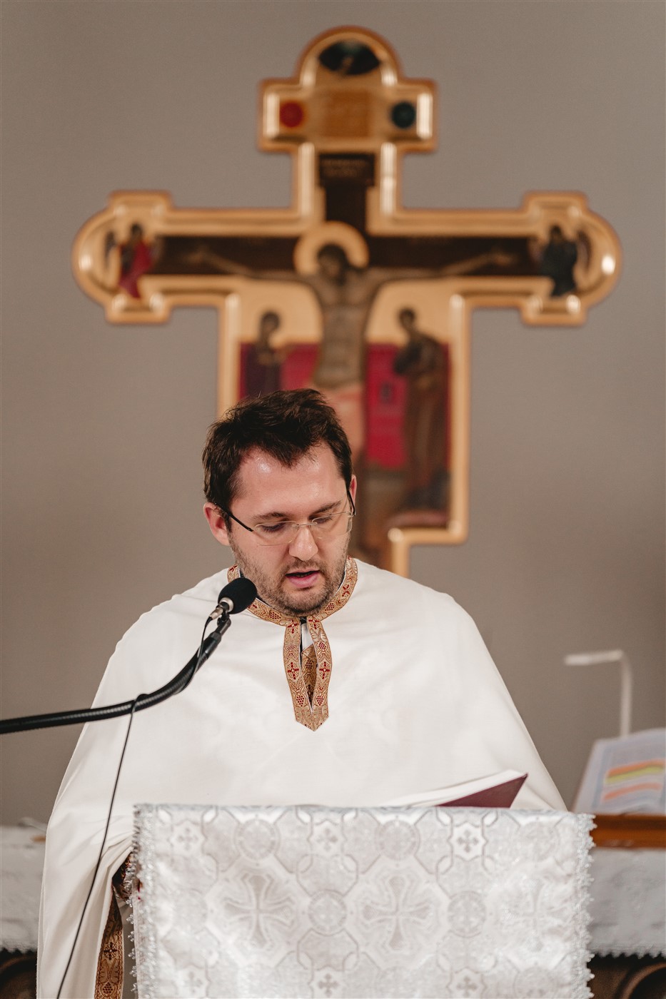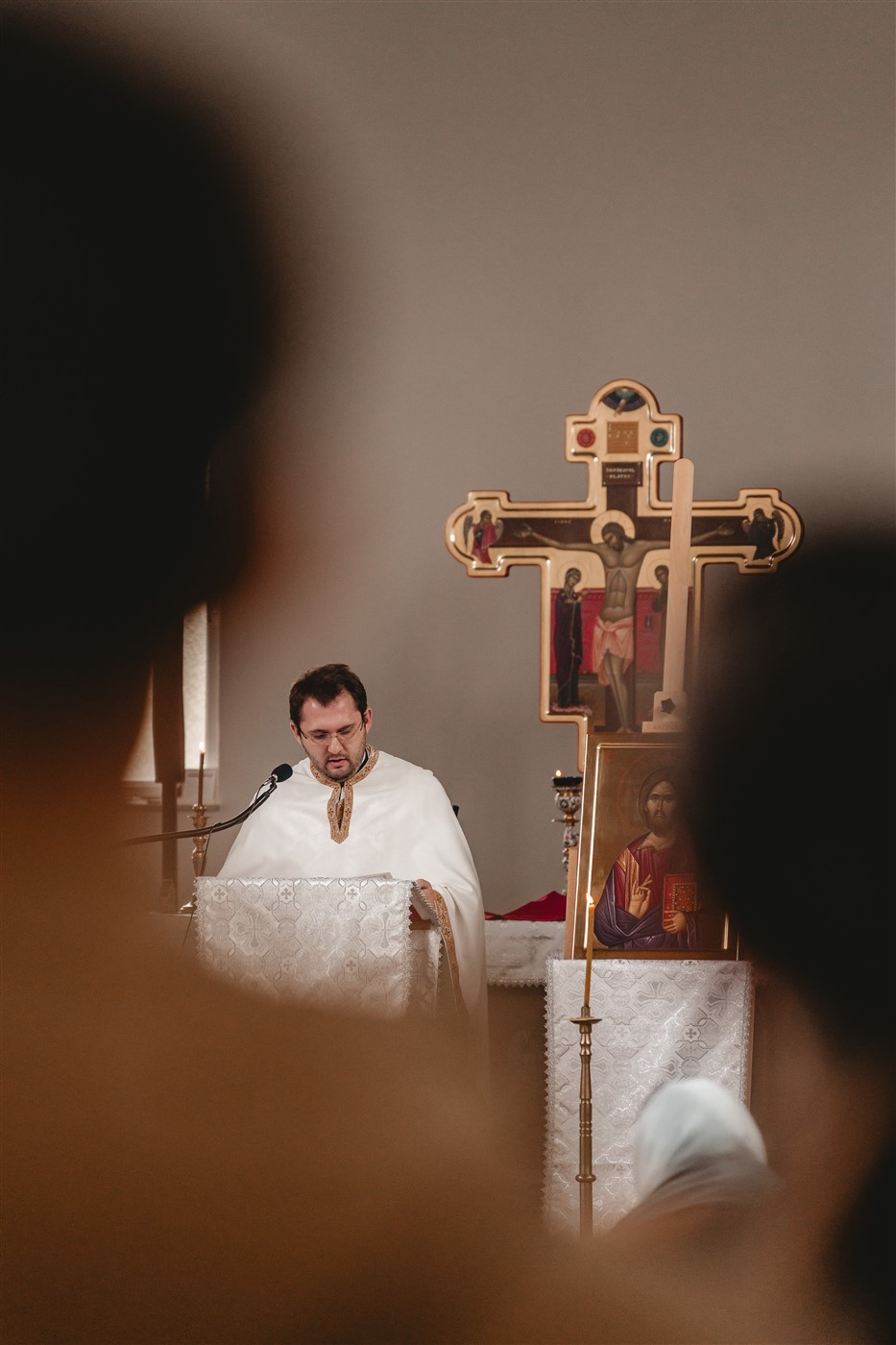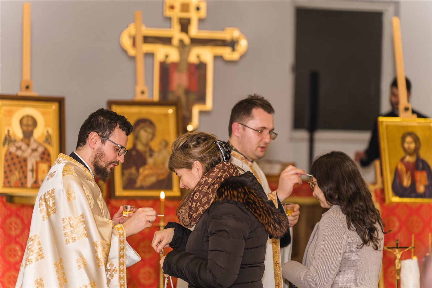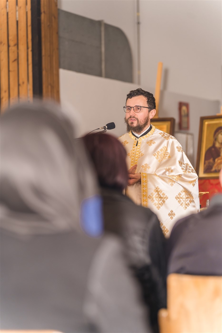 În scurta sa omilie, Părintele Cezar Marksteiner-Ungureanu a prezentat elevilor noțiunea de „Daruri mai înainte sfințite” și motive pentru care, în timpul Postului Mare, de luni până vineri, nu se poate celebra Liturghia cu care ei sunt obișnuiți, a Sfântului Ioan Gură de Aur.