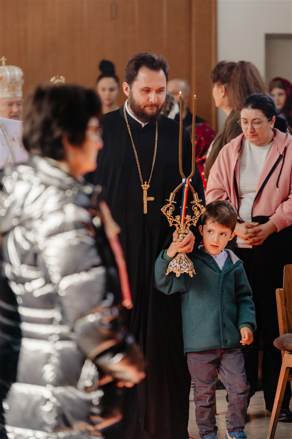 La slujba săvârșită în limba germană de Părintele Dr. Cezar Marksteiner-Ungureanu, au participat peste 80 de elevi ortodocși de diferite naționalități, care sunt îndrumați la ora de religie ortodoxă de Părintele Emanuel Nuțu. În cadrul sfintei Liturghii, elevii au participat activ la lecturarea psalmilor, iar un număr semnificativ dintre aceștia s-au pregătit pentru primirea Sfintei Împărtășanii în această frumoasă perioadă a postului.