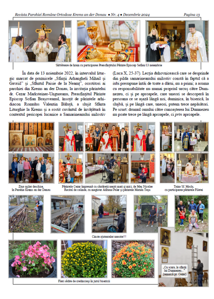 Obligativitatea practicării milosteniei și a împărțirii avuției cu cei săraci nu și-au pierdut actualitatea: în România există copii care pun seara flămânzi capul pe pernă; copii care nu se pot bucura de o alimentație sănătoasă, nu pot spera la o masă bogată de Crăciun, din cauza condițiilor materiale precare în care trăiesc. Dreptul la o alimentație adecvată este însă un drept fundamental al omului, recunoscut în dreptul internațional (E/C.12/1999/5). Implementarea acestui drept trebuie să aibă loc indiferent de gradul de responsabilitate al părinților și al statului. Venind în întâmpinarea acestor copii, Mitropolia Ortodoxă Română a Germaniei, Europei Centrale și de Nord a dezvoltat începând cu 2013 proiectul „Burse pentru copii săraci din Moldova”, prin care 850 de copii din județele Vaslui și Botoșani sunt ajutați în fiecare lună cu un bon valoric de 30 de euro, iar 50 de copii de la Liceul „Nicolae Iorga“ din Negrești (județul Vaslui) primesc o masă caldă. Exersarea compasiunii față de cei mai puțin lipsiți de posibilități materiale, precum copiii și tinerii cuprinși în acest proiect filantropic, reprezintă un gest (obligatoriu) de pregătire duhovnicească spre întâmpinarea nașterii Fiului lui Dumnezeu în lume. Vă invit pe toți cei care ați parcurs aceste rânduri să aduceți bucuria Nașterii Domnului pe chipurile copiilor întristați de lipsuri și suferințe (datele necesare le găsiți mai jos).