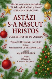 - Seară minunată de colinde la Parohia din Krems, Concert de Colinde „Astăzi s-a născut Hristos!”, 12 Decembrie 2025